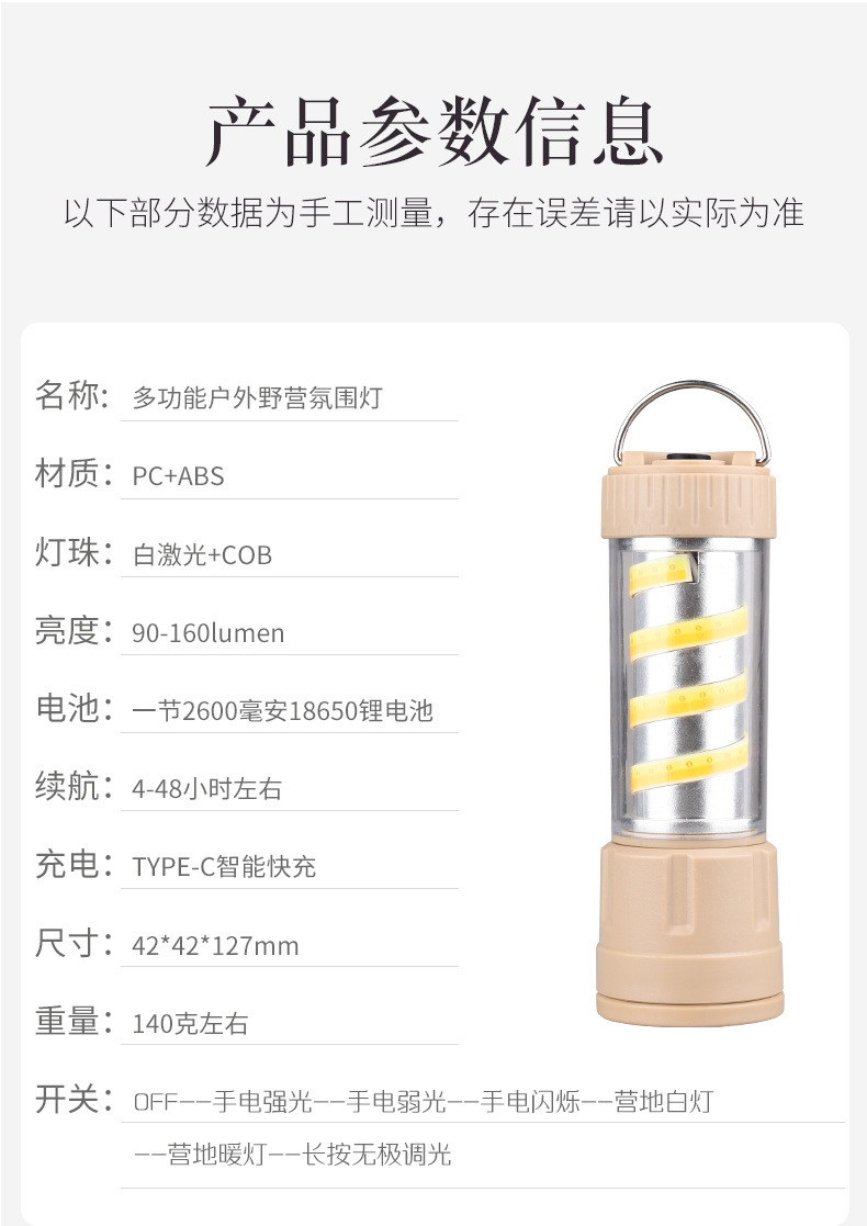 2024 새로운 캠핑 램프 야외 조명 손전등 휴대용 램프 텐트 램프 다기능 충전 캠핑 램프