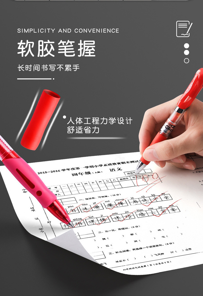 붉은 펜 젤 펜 K351008 빨간 펜 재고 도매로 표시된 Chenguang 대용량 빨간 펜 교정 숙제