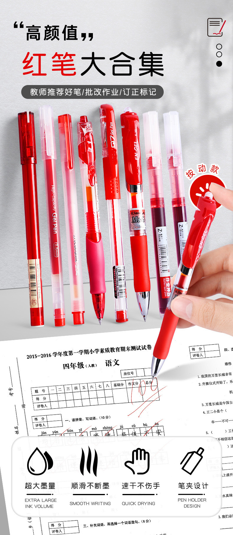 붉은 펜 젤 펜 K351008 빨간 펜 재고 도매로 표시된 Chenguang 대용량 빨간 펜 교정 숙제스토어 가기