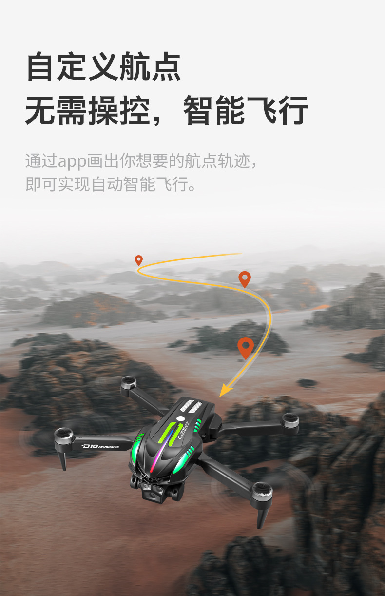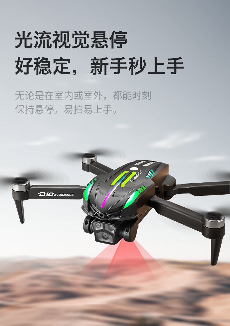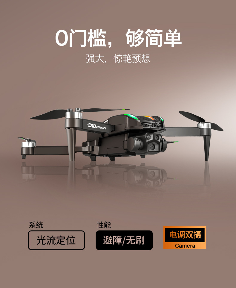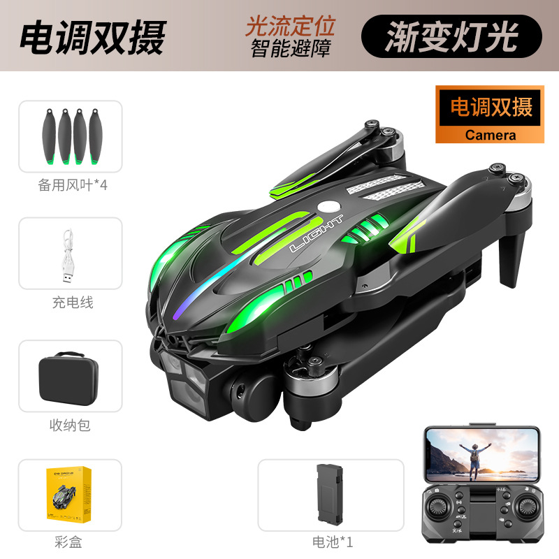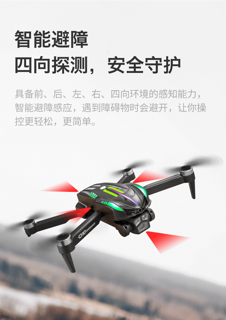 产品配置:渐变流水灯+内置四面避障+无刷电机+光流定位电调双摄