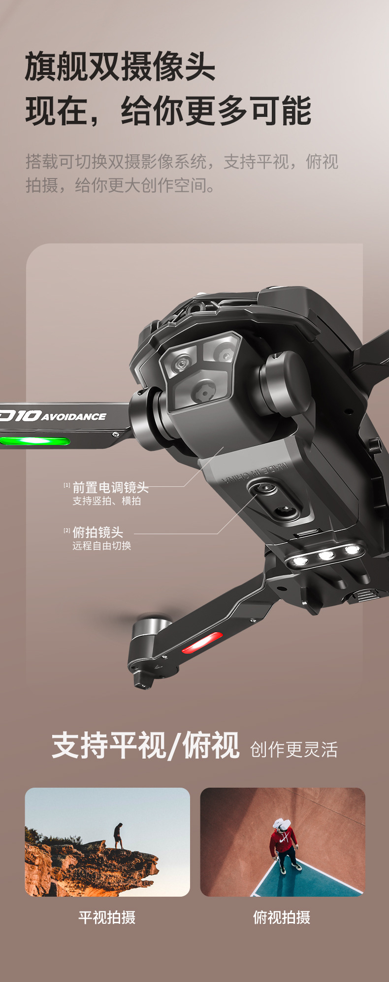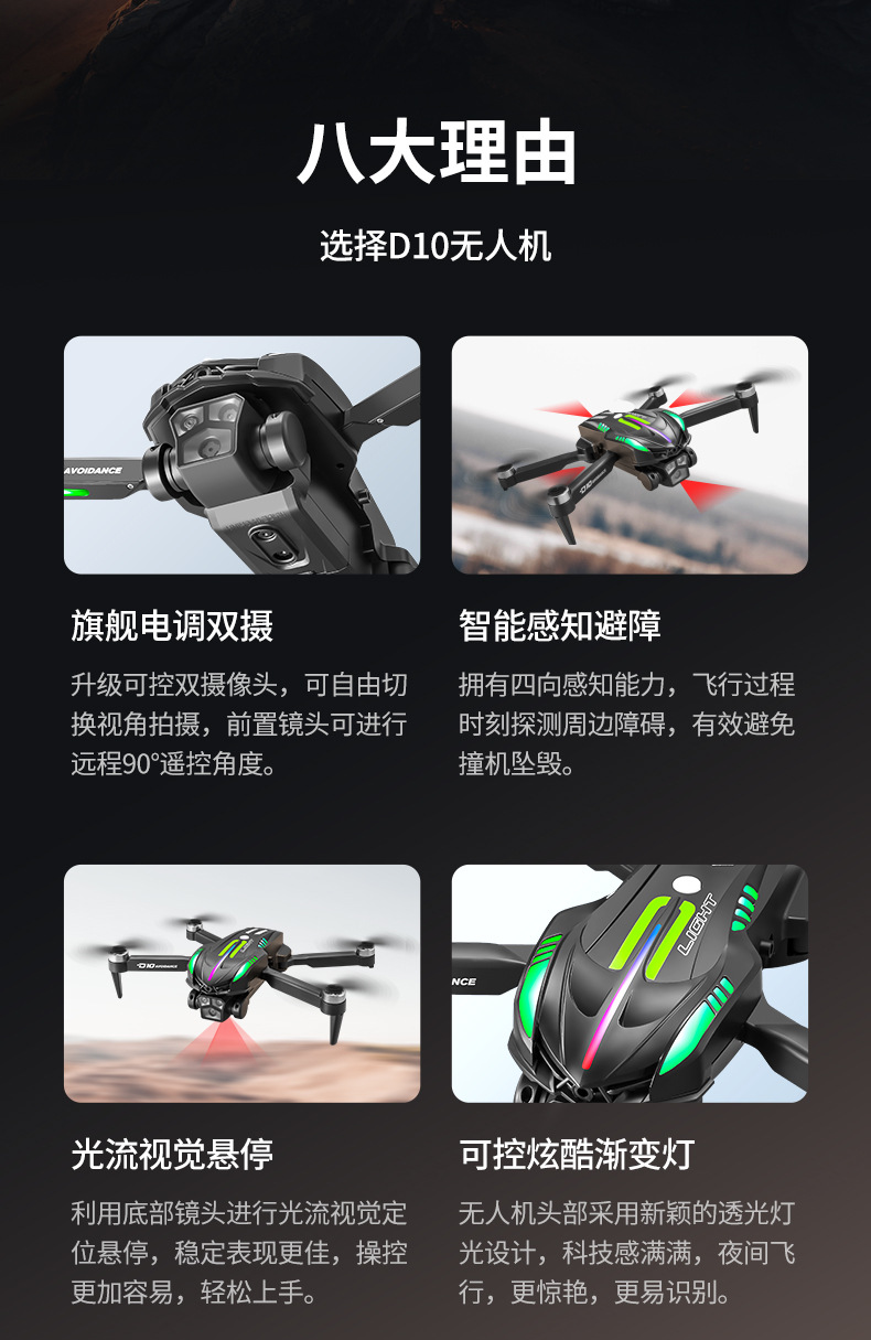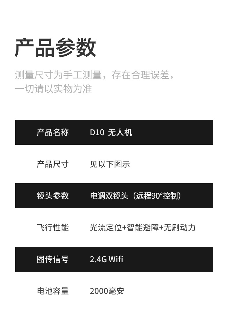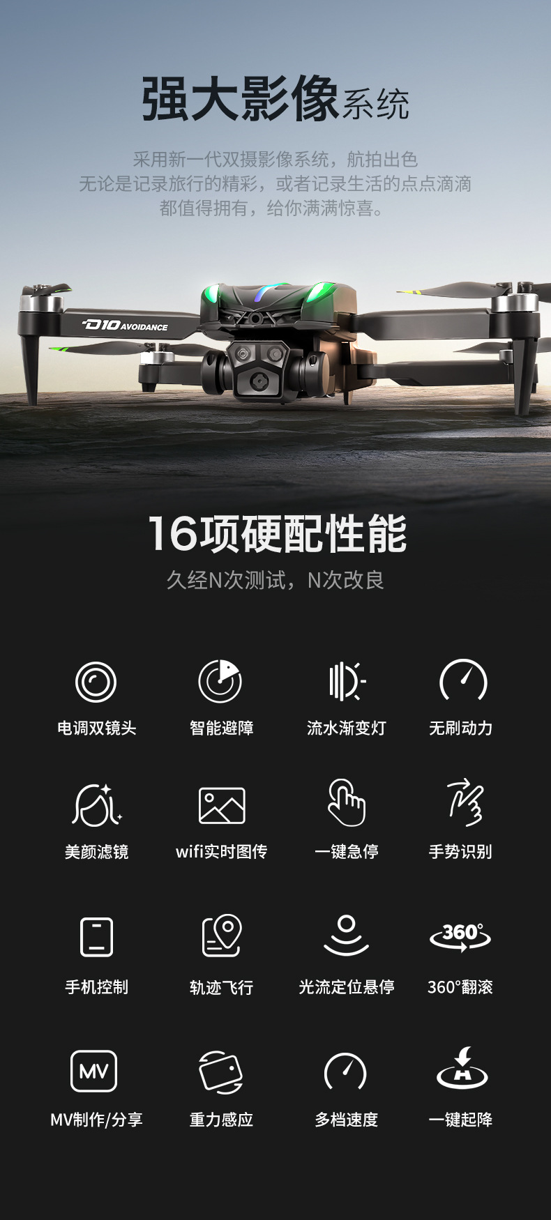 产品配置:渐变流水灯+内置四面避障+无刷电机+光流定位电调双摄