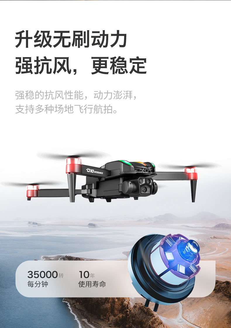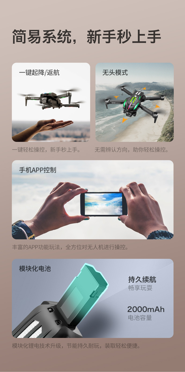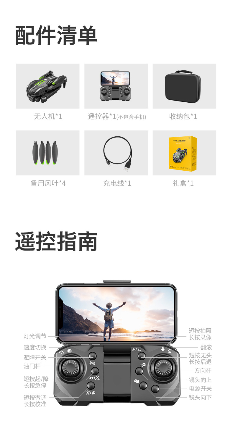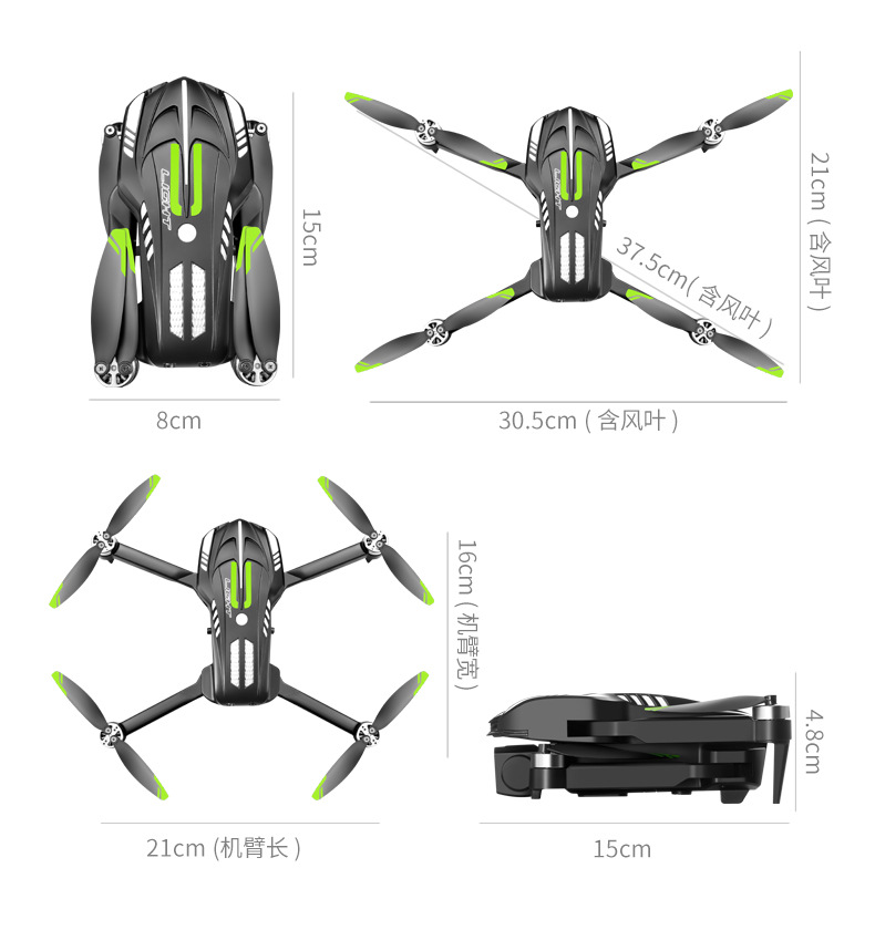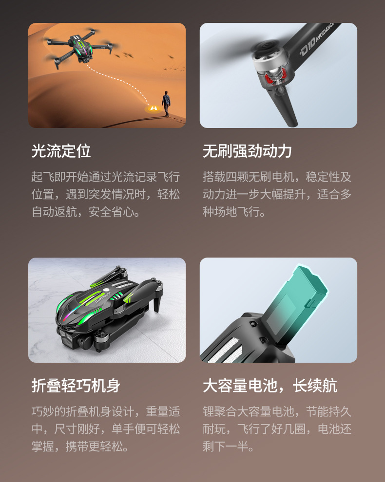 产品配置:渐变流水灯+内置四面避障+无刷电机+光流定位电调双摄