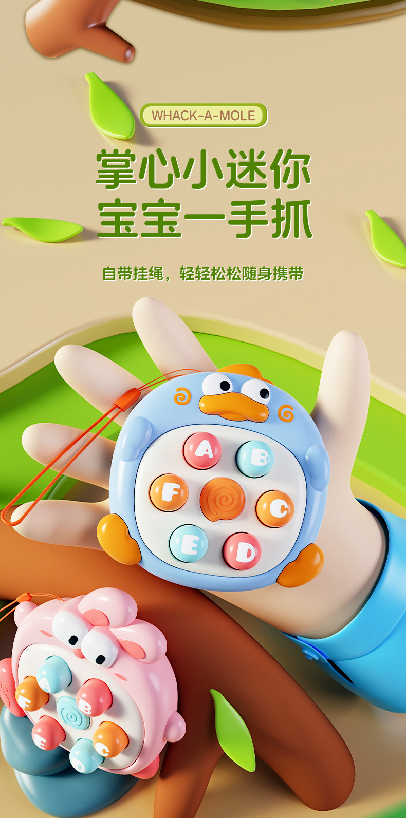• 손바닥 속의 귀여운 토끼 두더지 잡기 [녹색] opp 가방