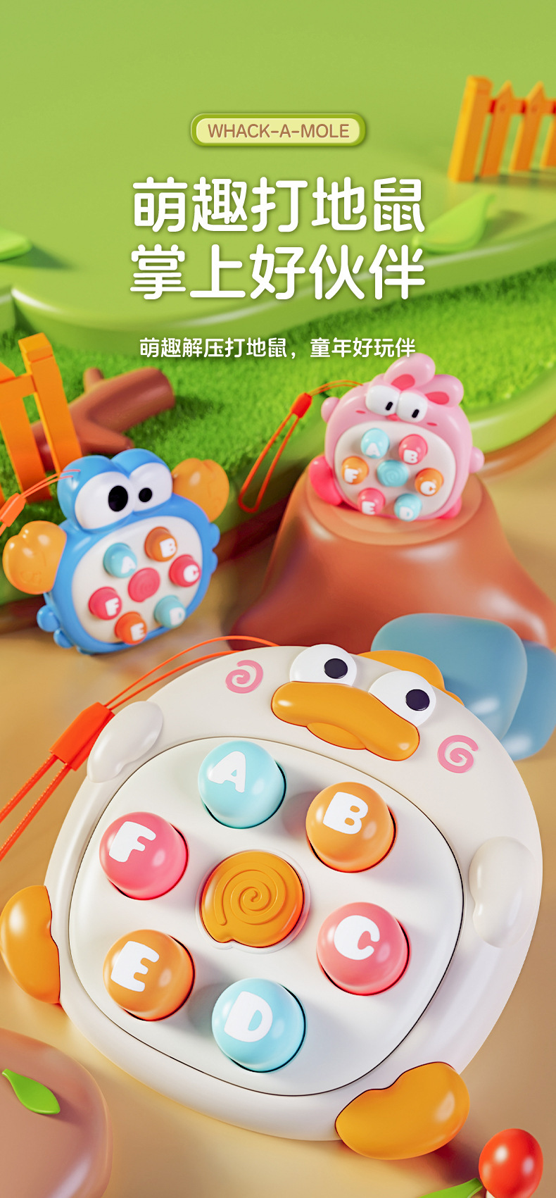 국경 간 팜 귀여운 오리 햄스터 압축 장난감 아기 퍼즐 프레스 음악 아기 미니 키 체인 작은 펜던트