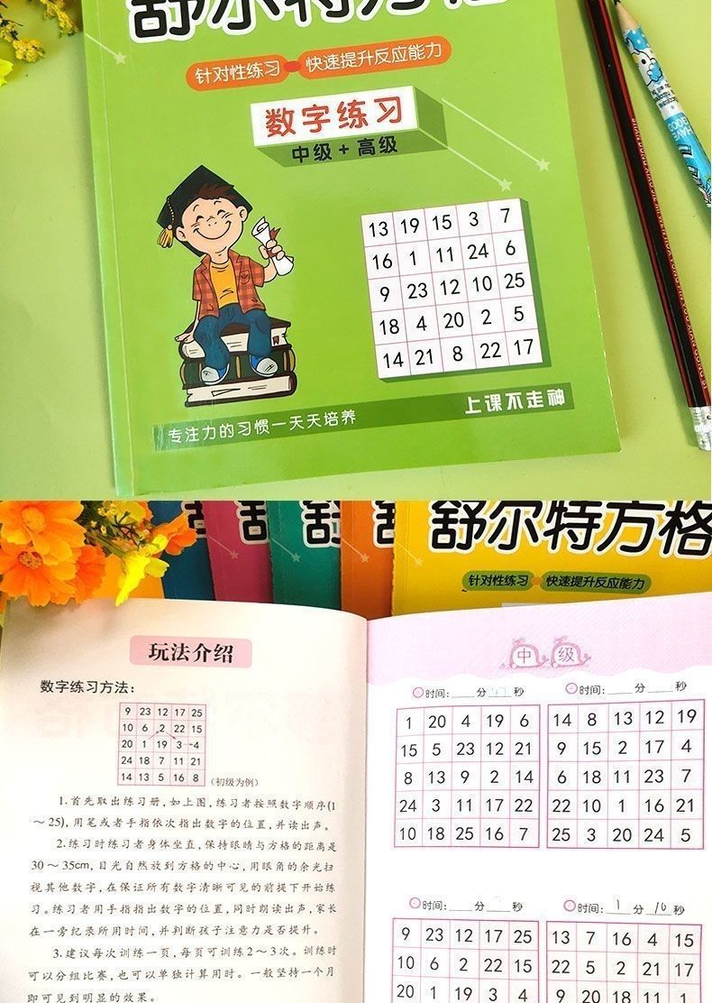 Schulte 광장 집중 훈련 어린이 3-12 세 디지털 고대시와 색상 간섭 집중 정신 훈련스토어 가기