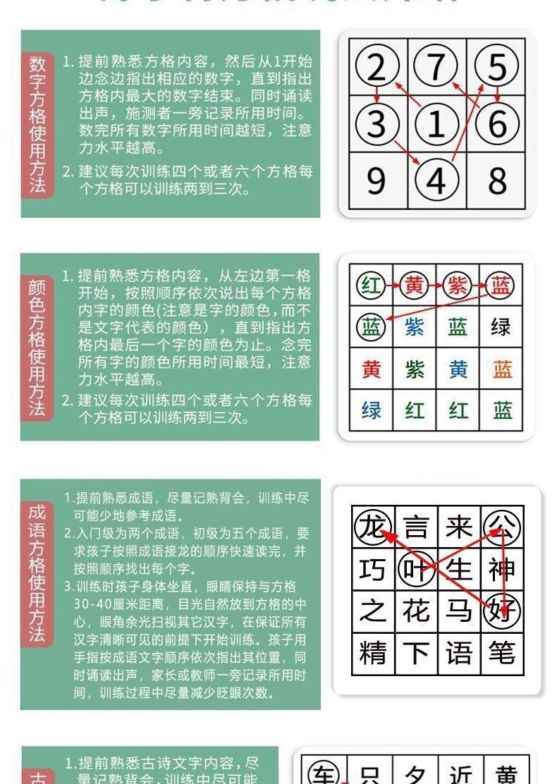 Schulte 광장 집중 훈련 어린이 3-12 세 디지털 고대시와 색상 간섭 집중 정신 훈련