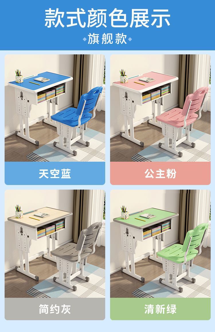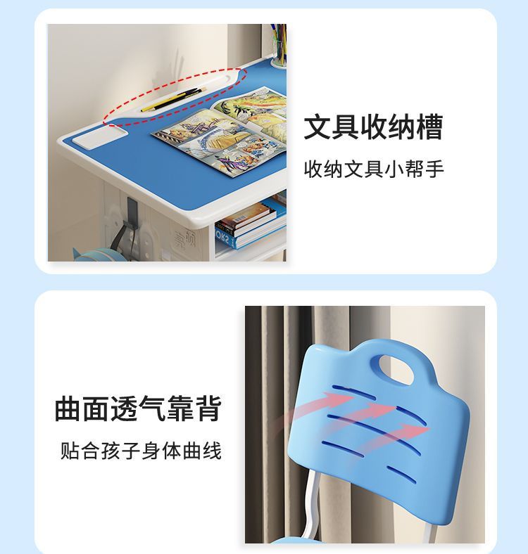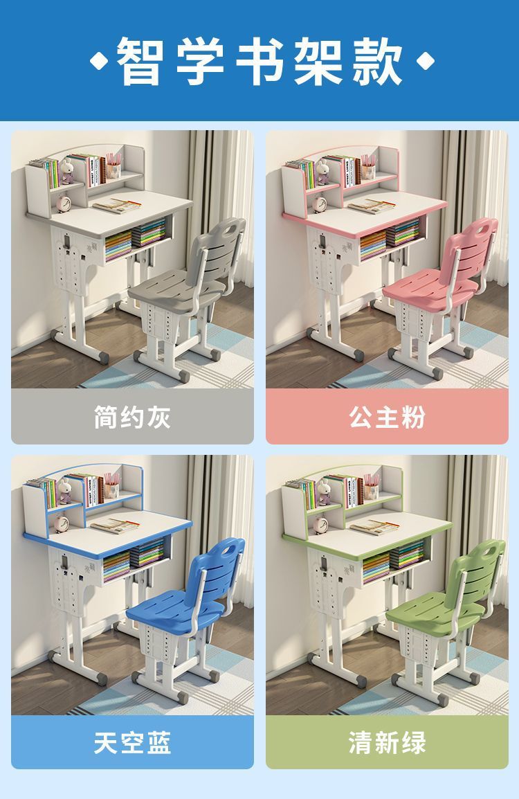 어린이 스터디 데스크 학생 홈 워크 필기 데스크 남녀 세트 다기능 리프팅 데스크 및 의자