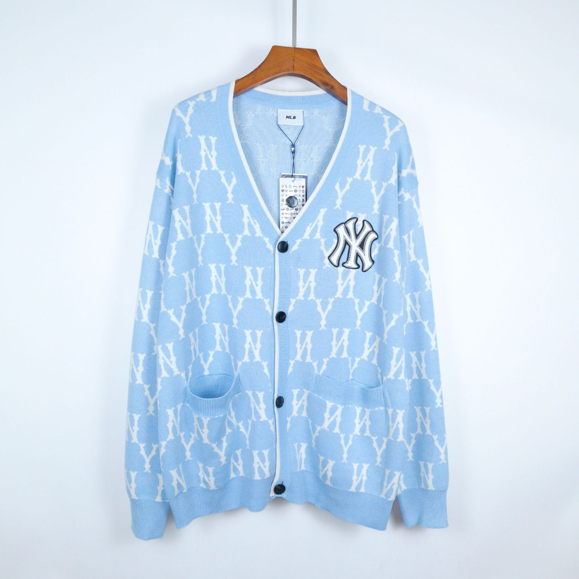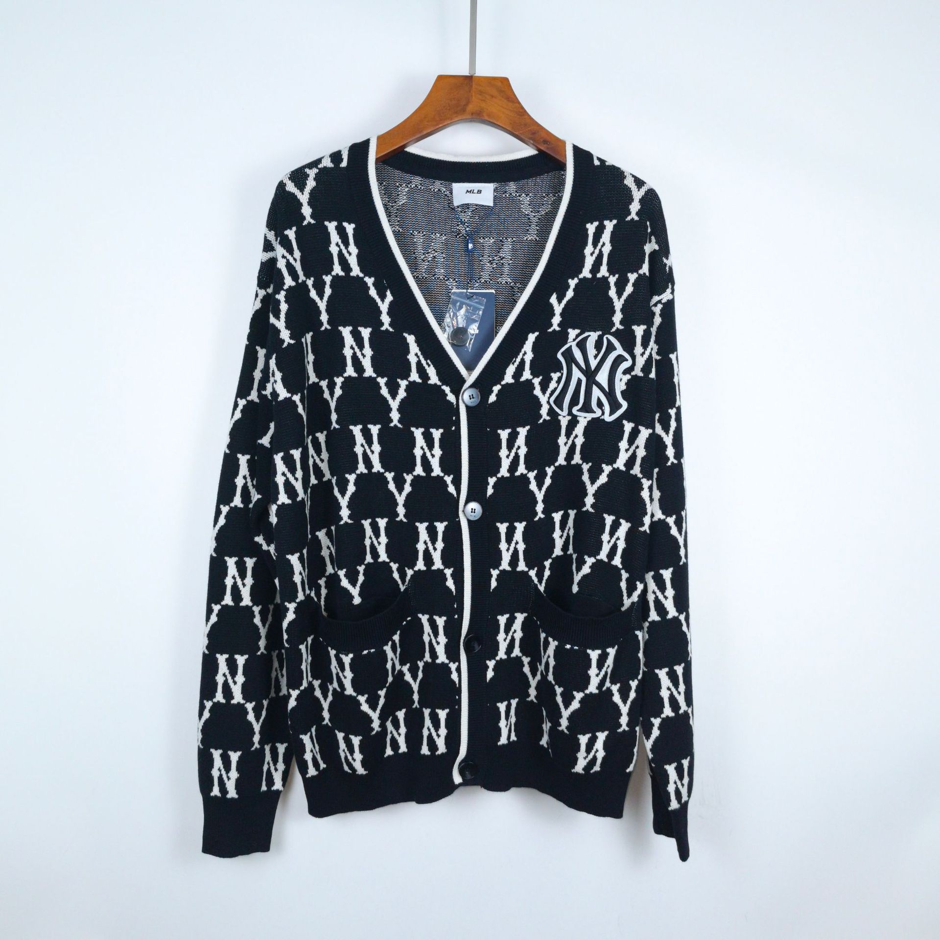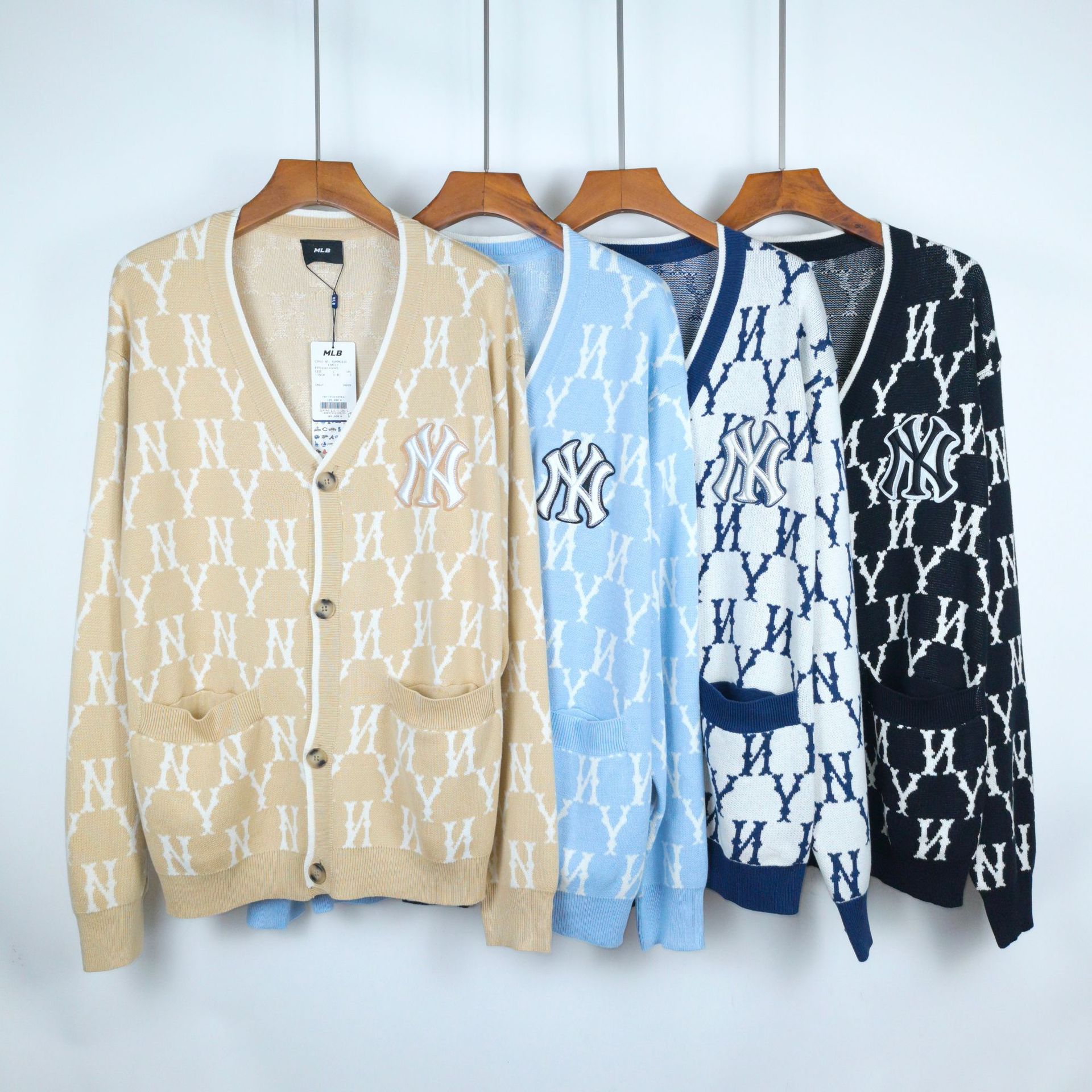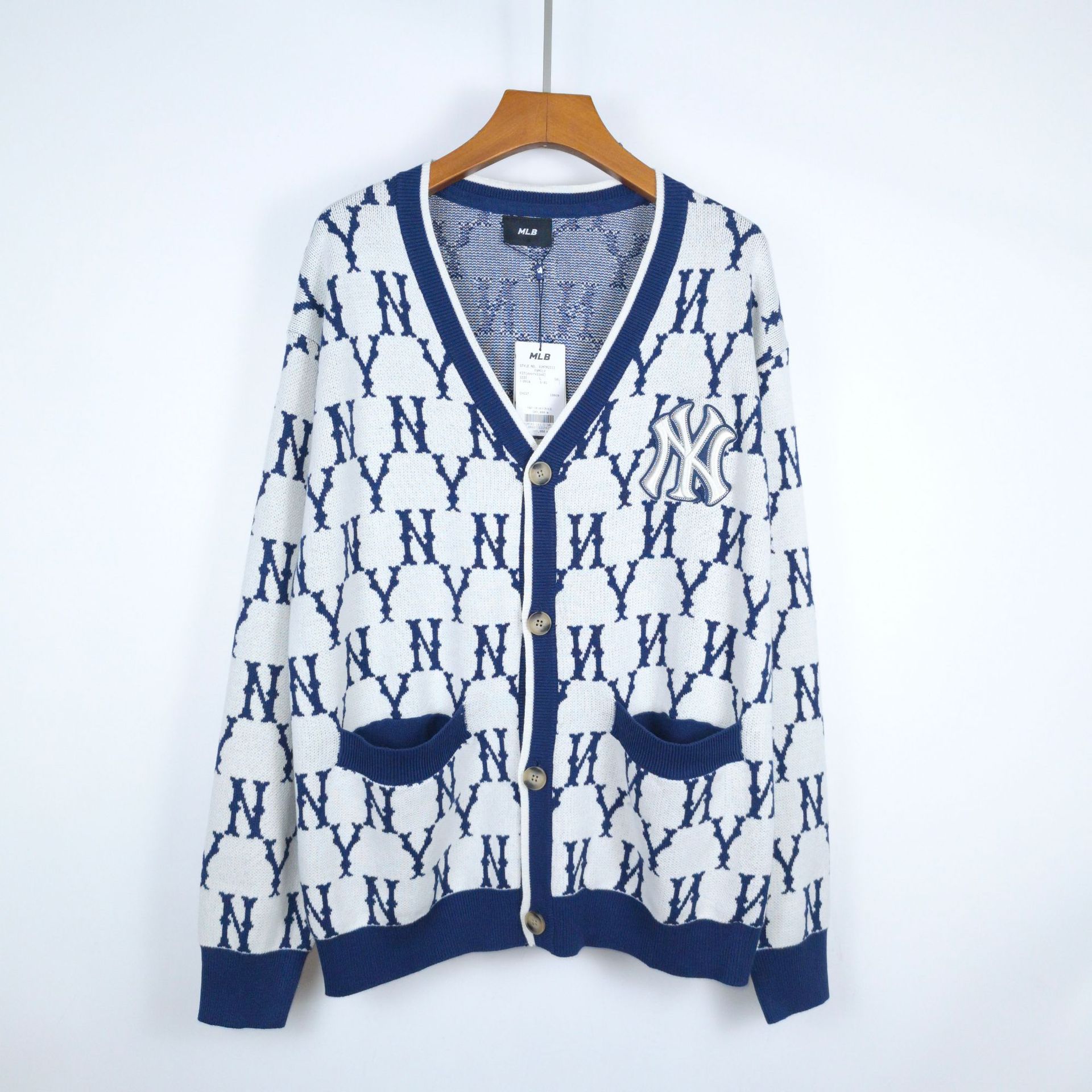 高版本韩系MLB新款男女针织衫复古老花开衫情侣休闲宽松百搭外套스토어 가기
