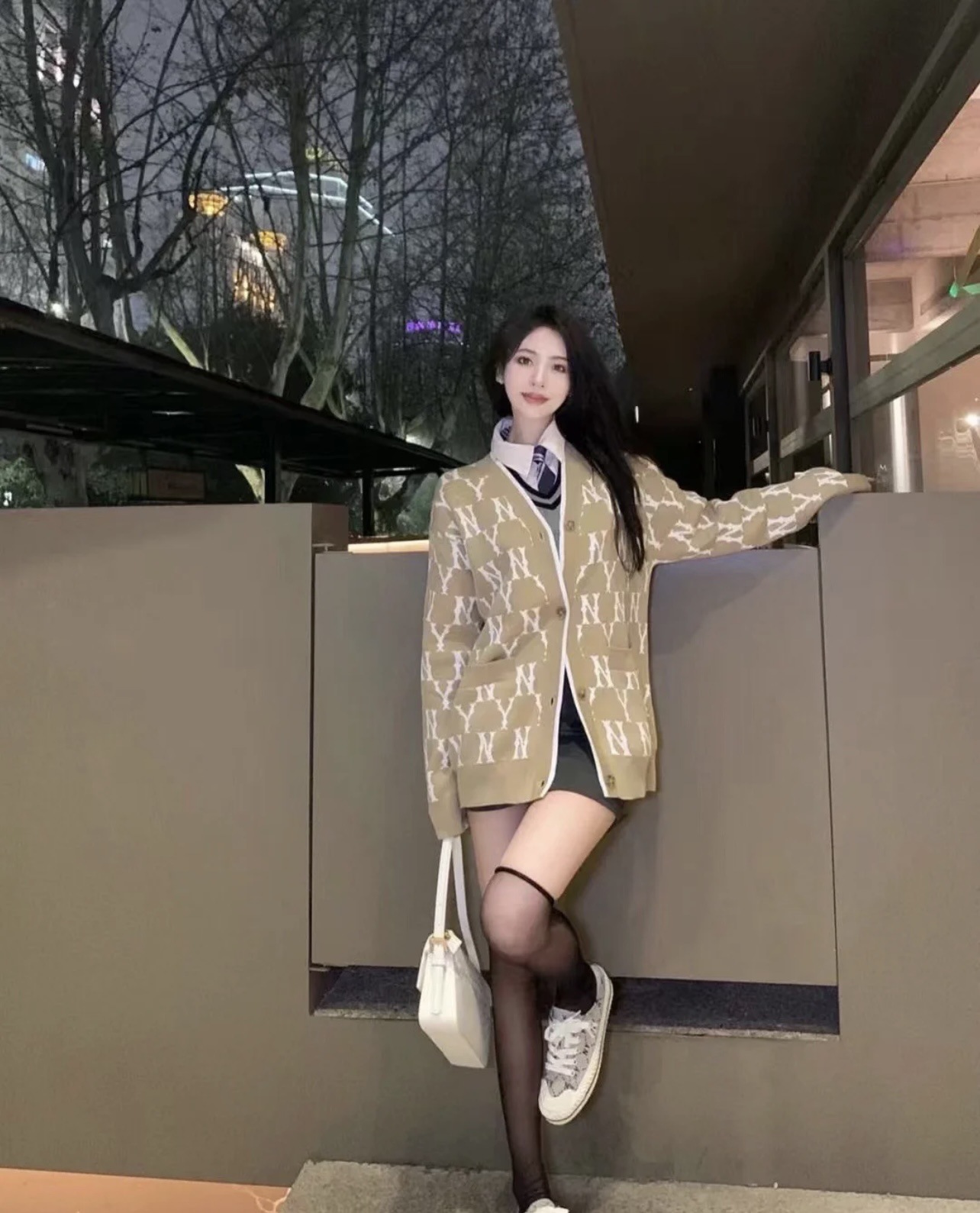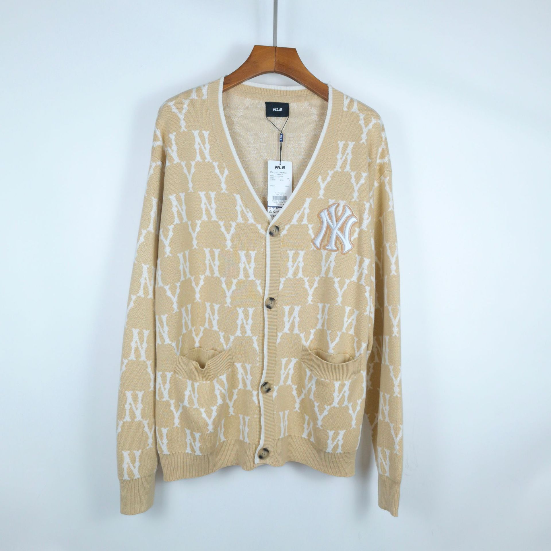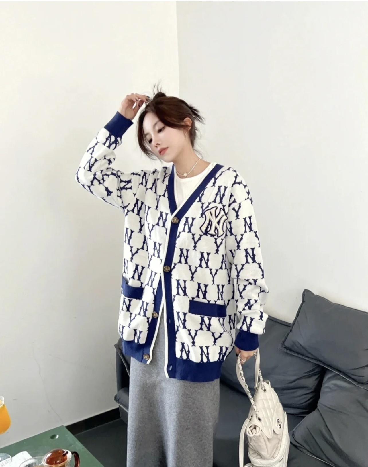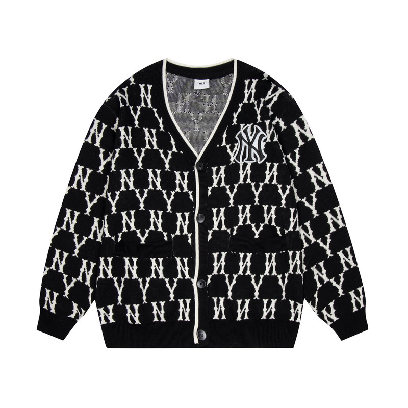 高版本韩系MLB新款男女针织衫复古老花开衫情侣休闲宽松百搭外套스토어 가기