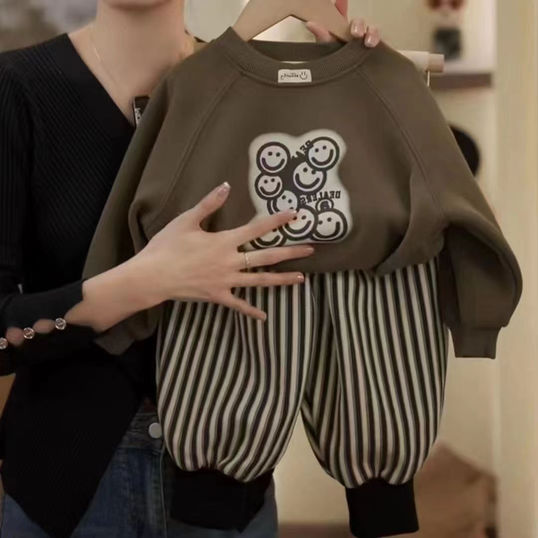 소년의 겨울 더미 미소 세트 새로운 유행 어린이 세트 가을과 겨울 옷 멋진 잘 생긴 아기 옷