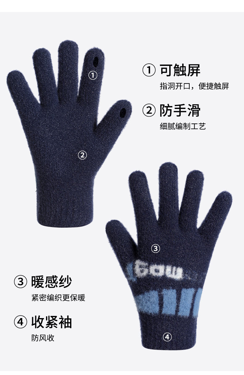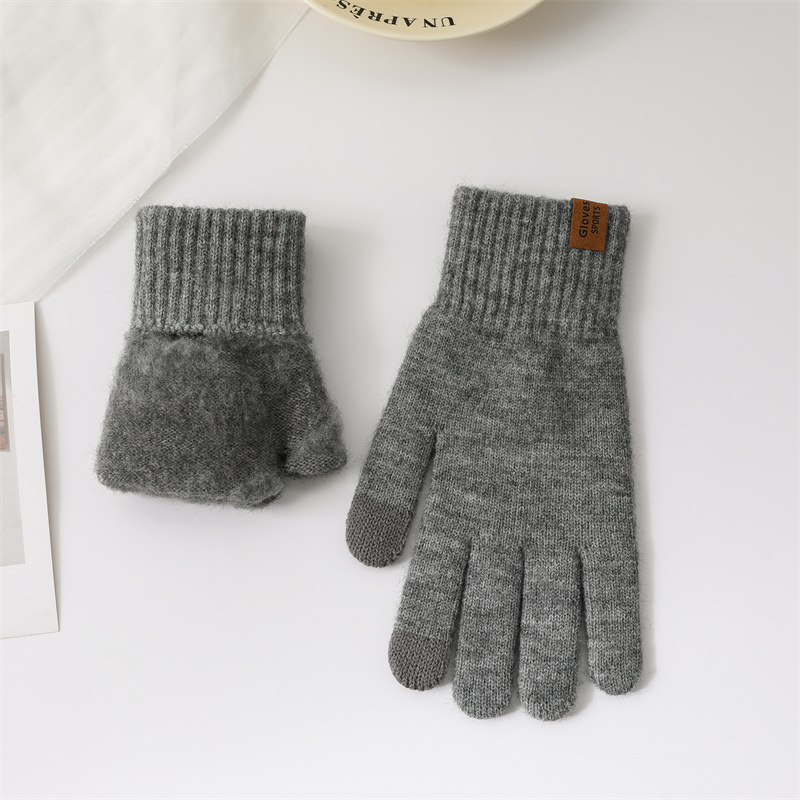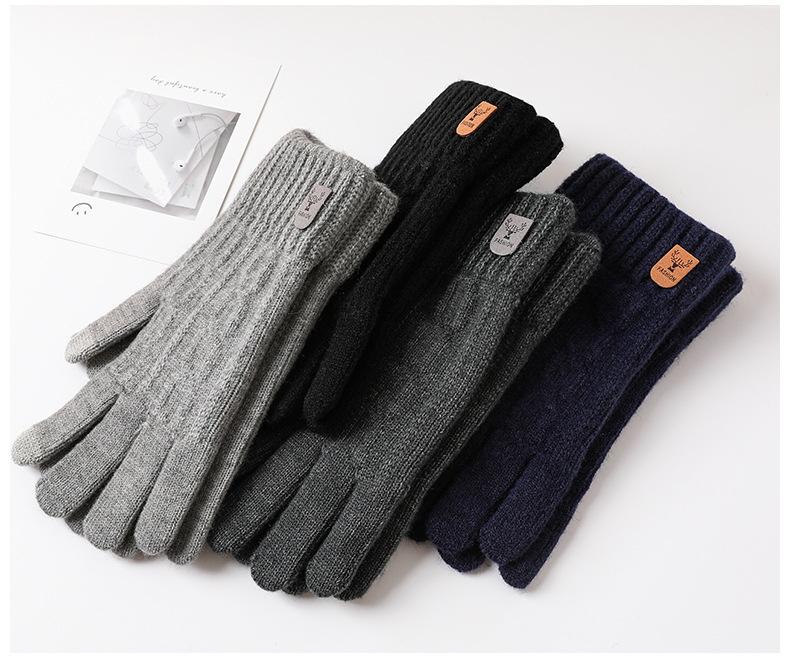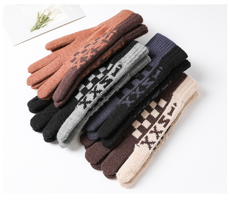 국경 간 니트 장갑 남성용 겨울 기모 두껍게 감기용 여성용 터치 스크린 따뜻한 울 장갑 제조 업체 도매