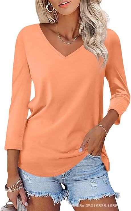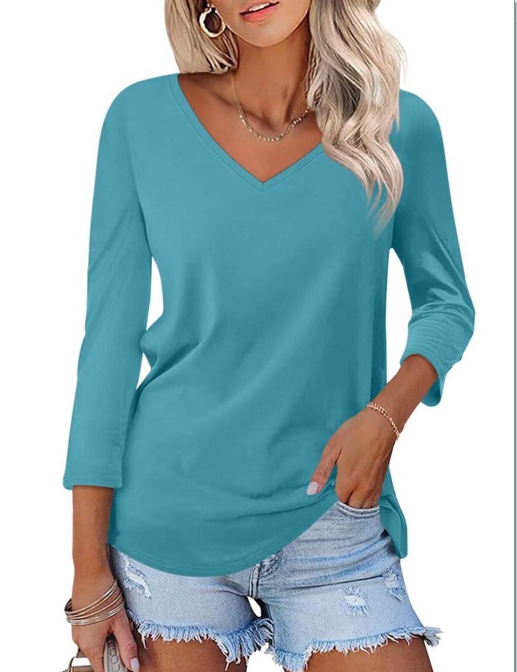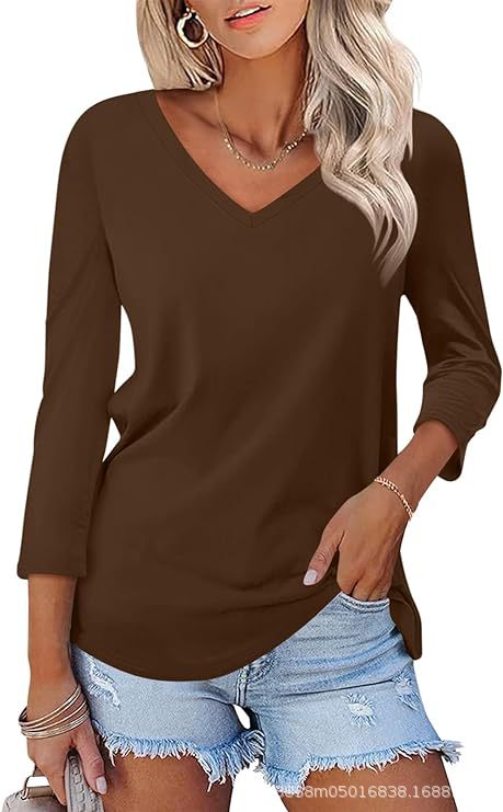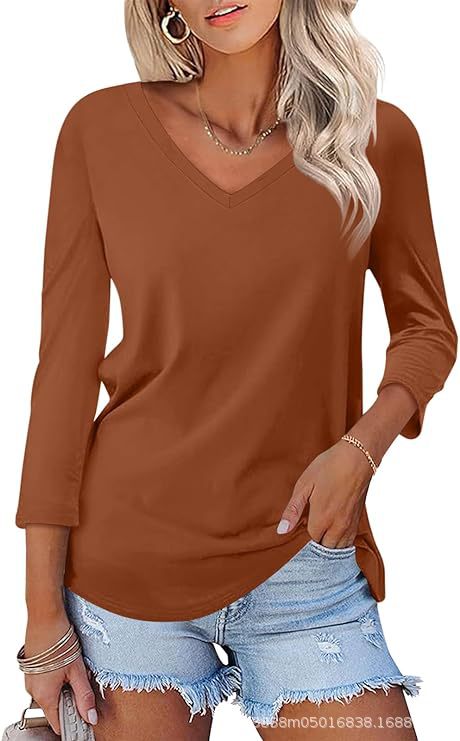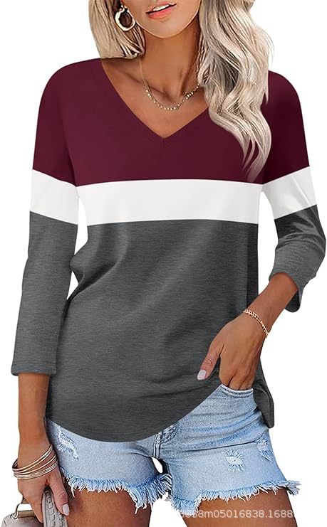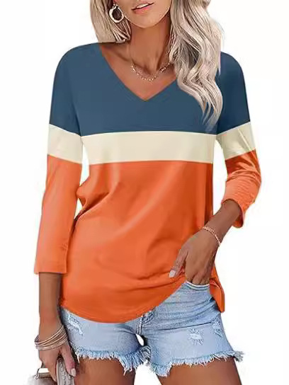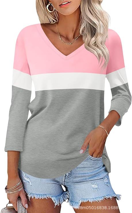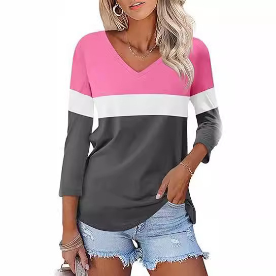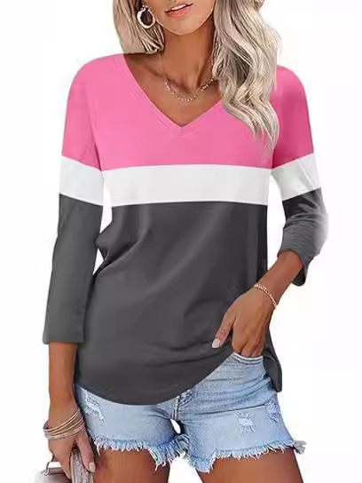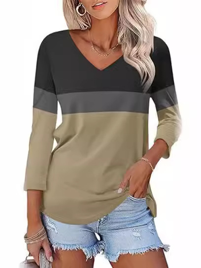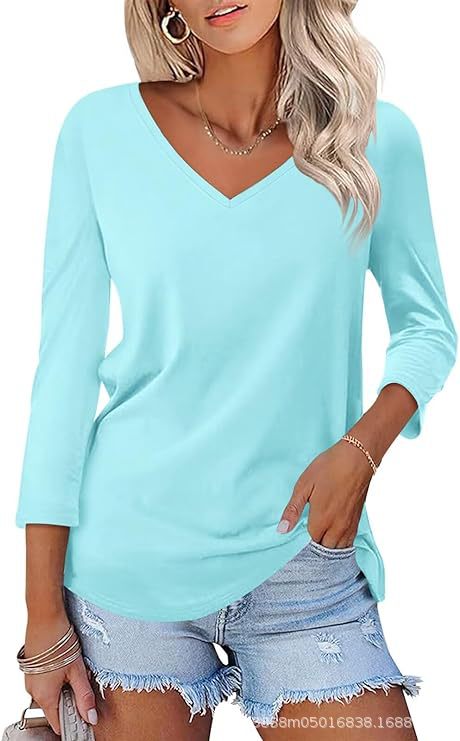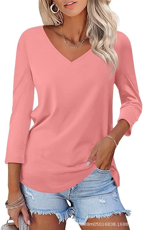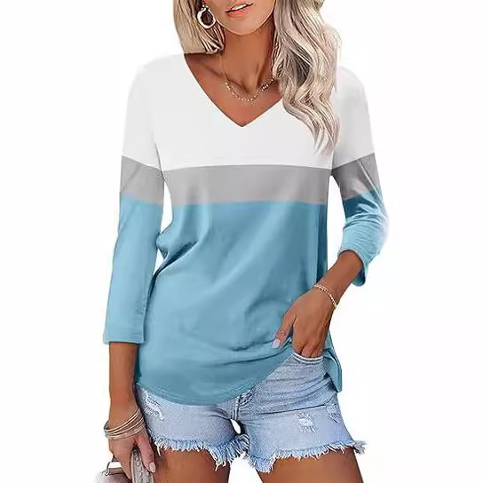 유럽과 미국 여성의 브이넥 슬림 긴팔 셔츠 7부 5부 반팔 티셔츠 3D 프린트 탑스토어 가기