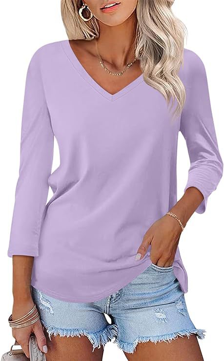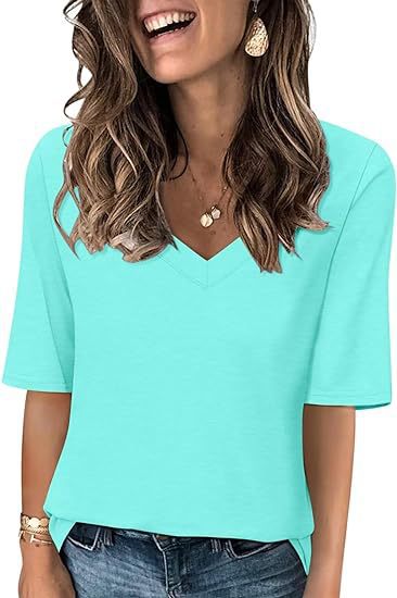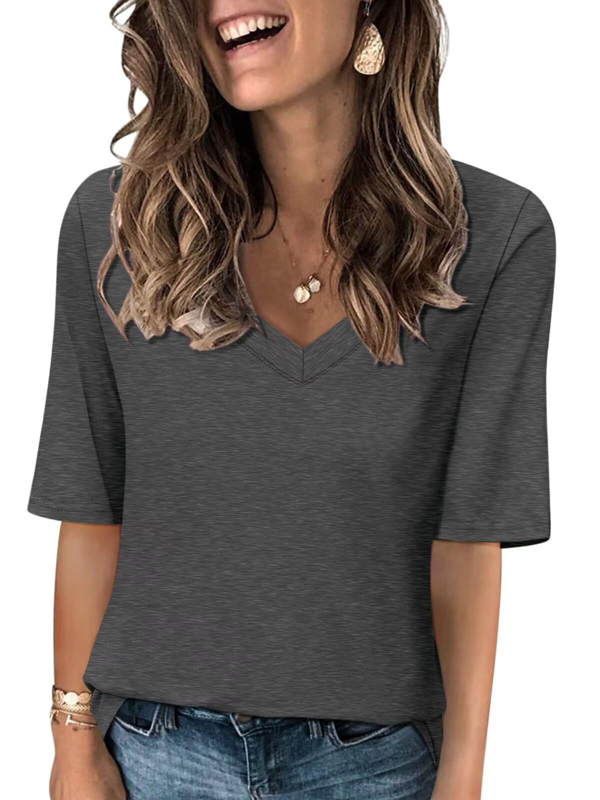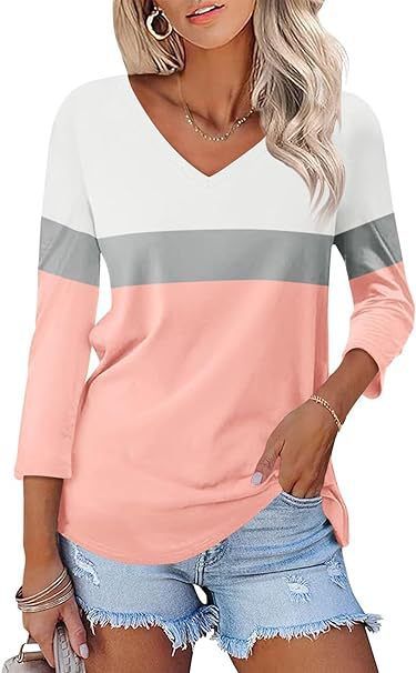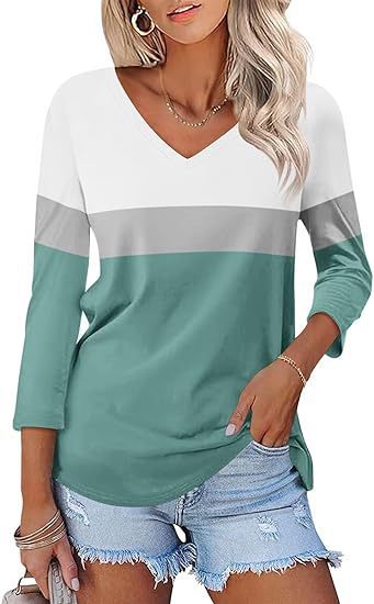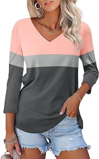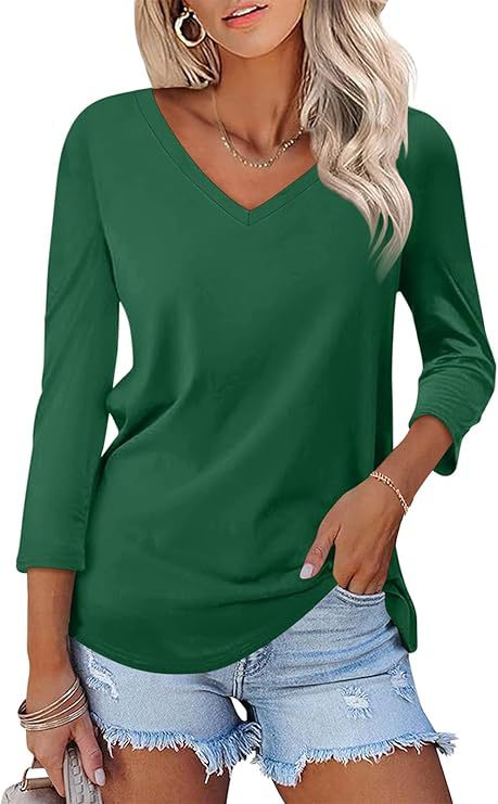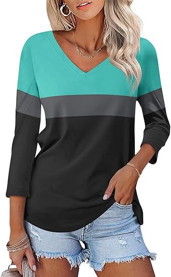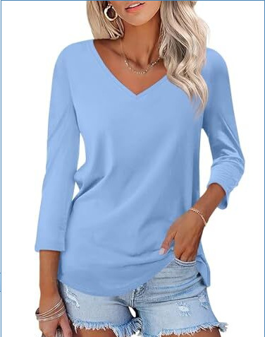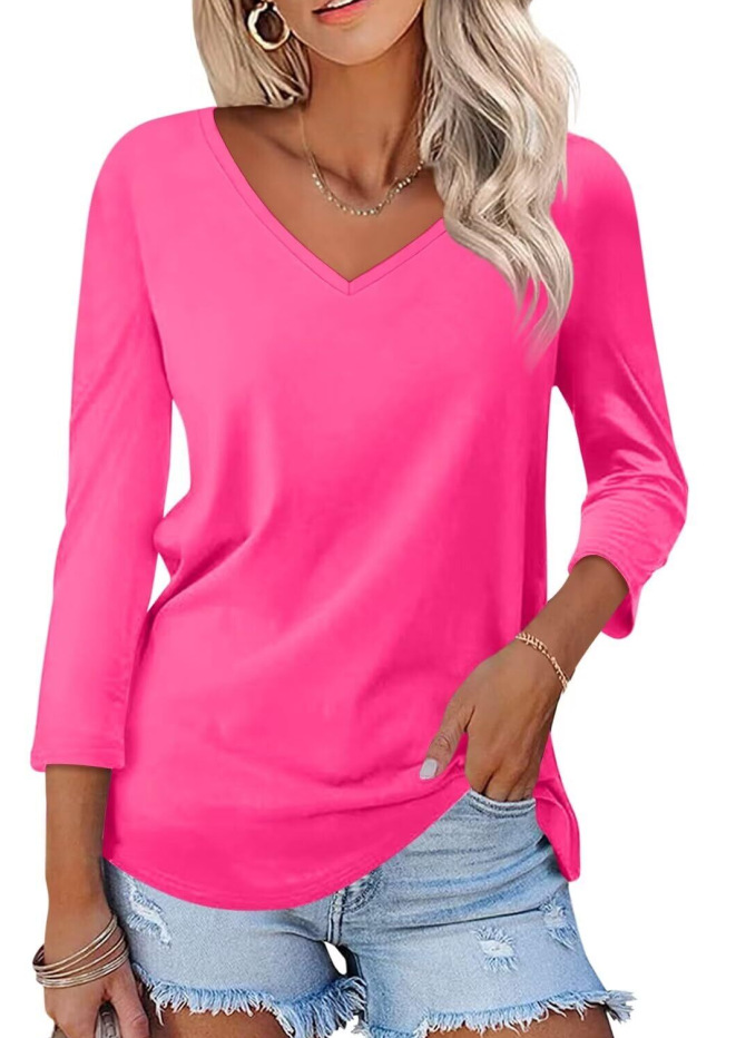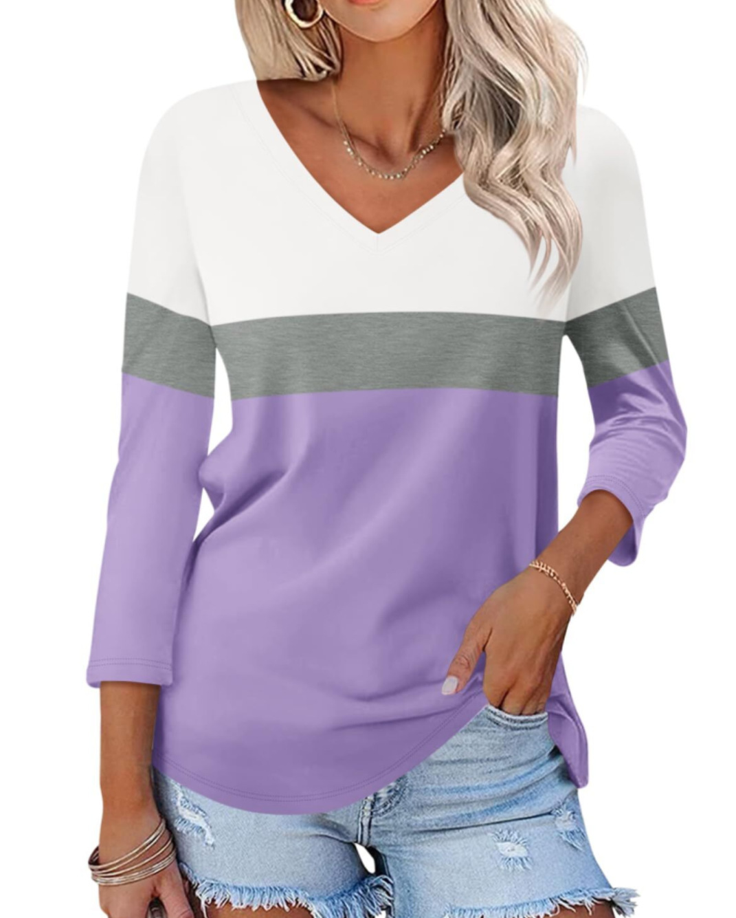 유럽과 미국 여성의 브이넥 슬림 긴팔 셔츠 7부 5부 반팔 티셔츠 3D 프린트 탑스토어 가기