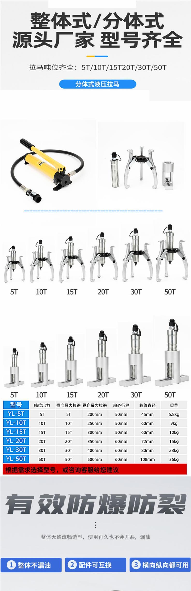 분할 유압 풀러 5T10T20T30T50T100 톤 3 턱 2 턱 분리 휠 풀러 제거 도구스토어 가기