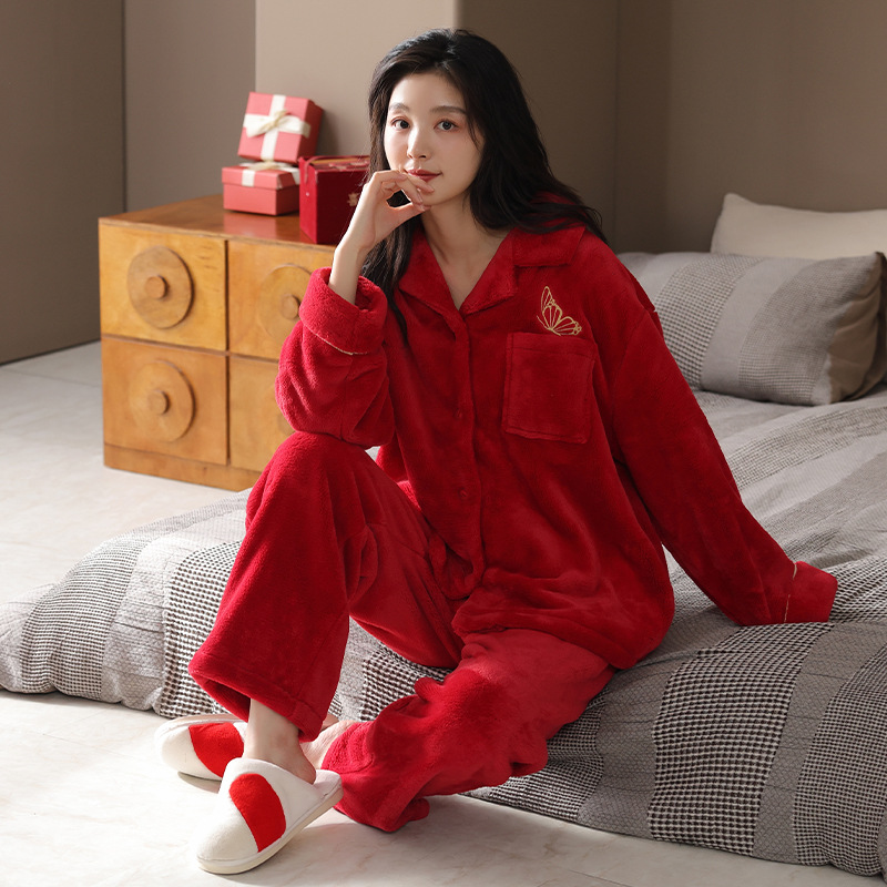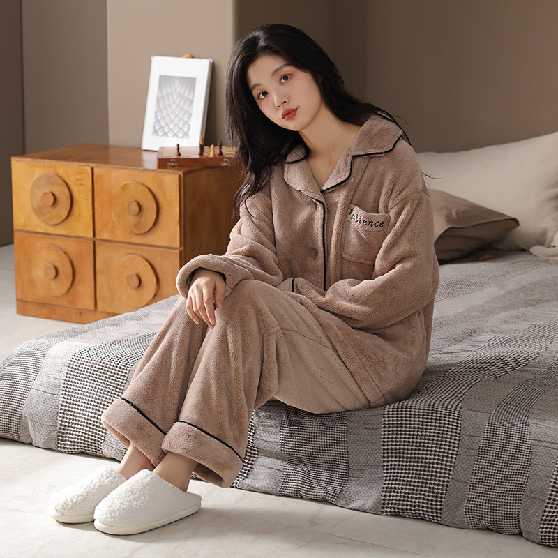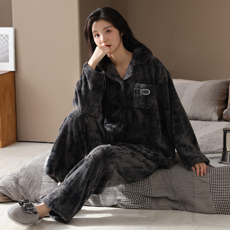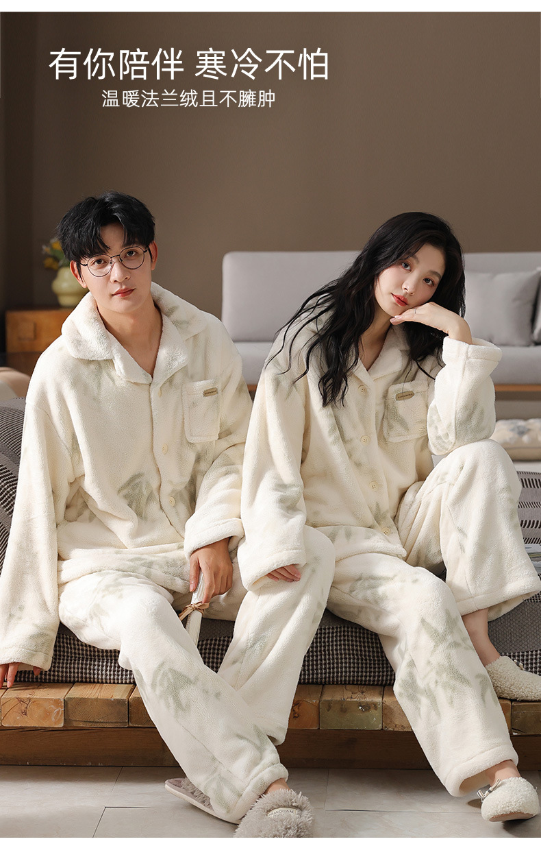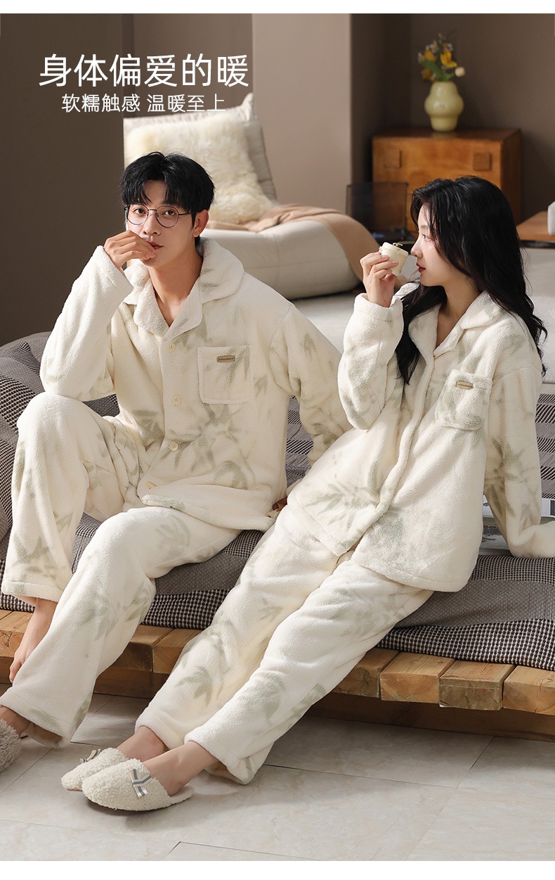 겨울 커플 잠옷 여성의 겨울 산호 벨벳 따뜻한 두꺼운 여성 플란넬 남성 긴 소매 홈 의류 여성 세트