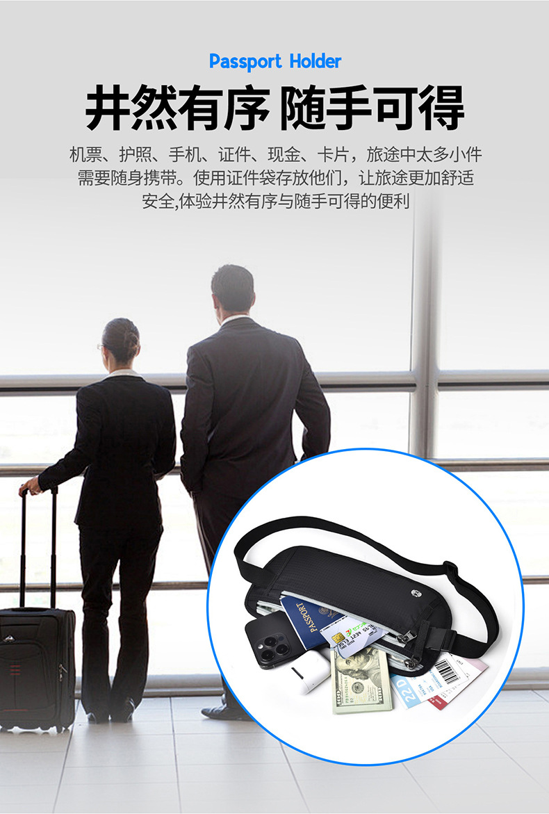 도난 방지 브러시 여행 여권 ID 가방 가까이 보이지 않는 방수 변경 휴대 전화 허리 가방 ID 카드 보관 가방 고정 인쇄