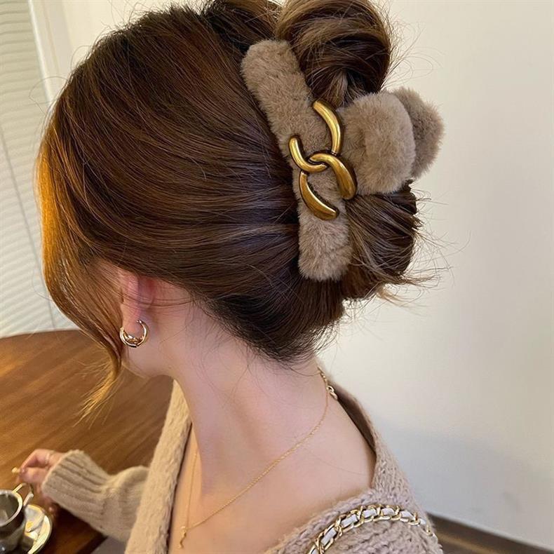 봉제 상어 머리 머리 착용 고급 클립 대형 우아한 잡아 스타일 빈티지 스타일 헤어 핀 클립 여성용