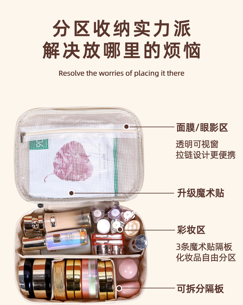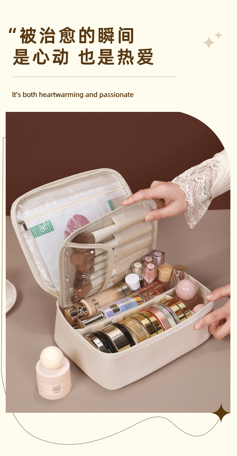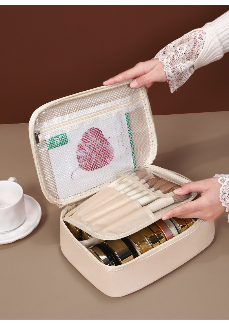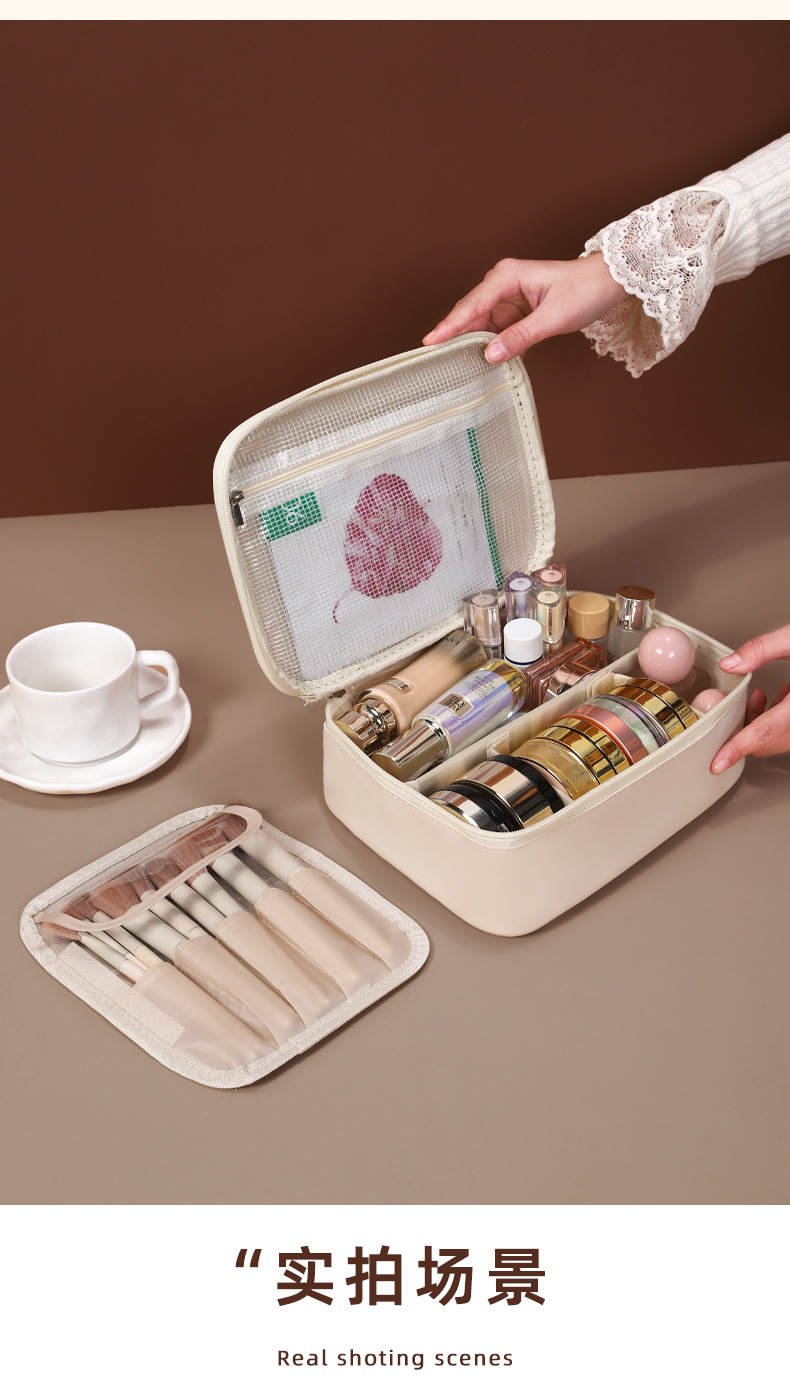 새로운 PU 휴대용 수납 가방, 분리형 여행용 대용량 고급 다기능 화장품 가방