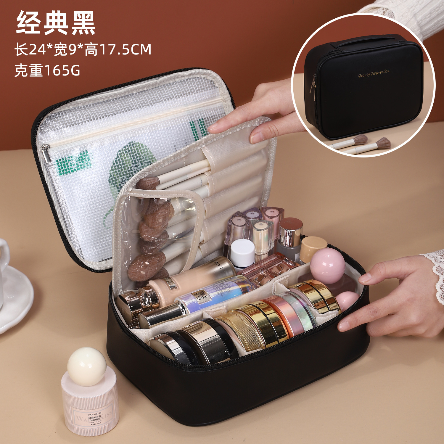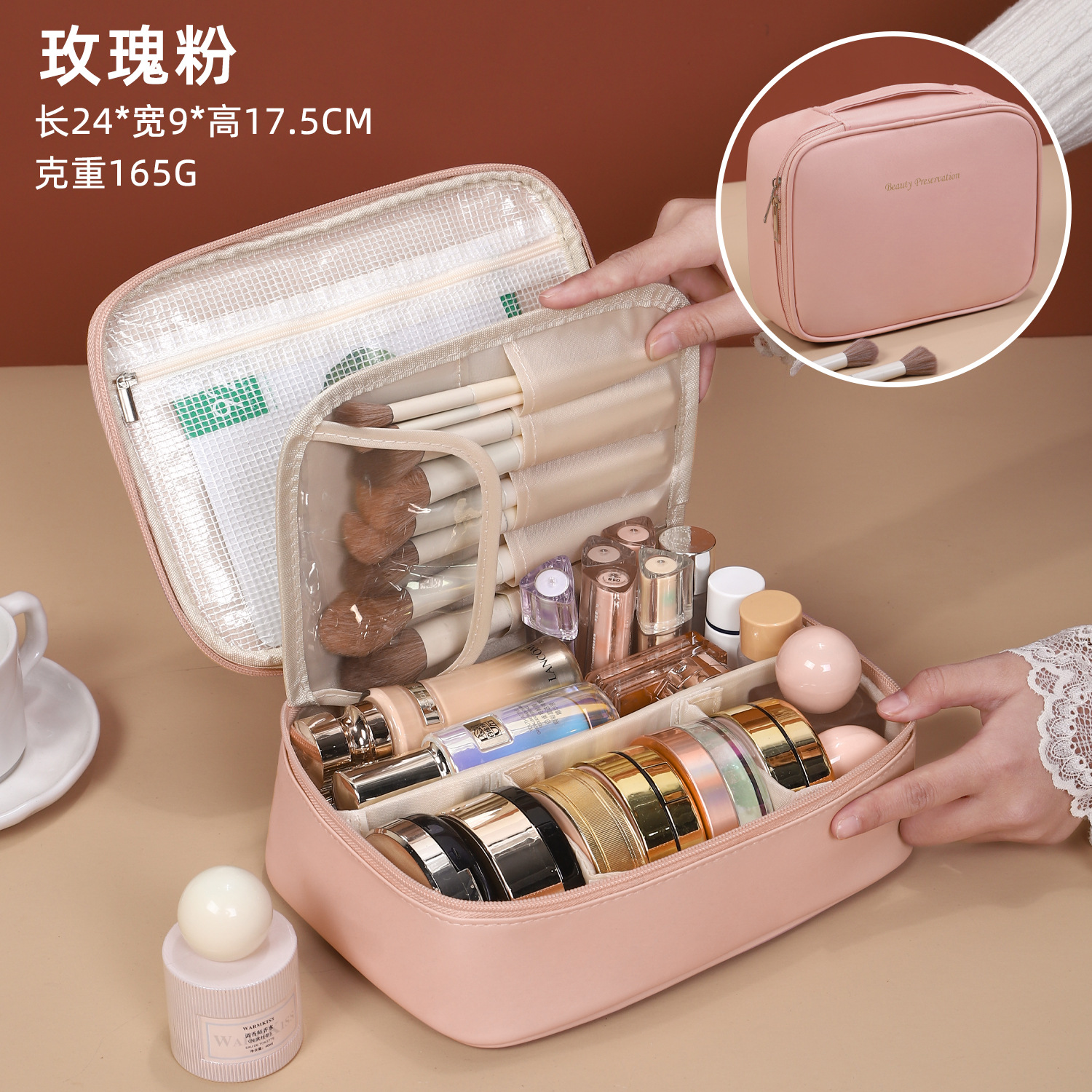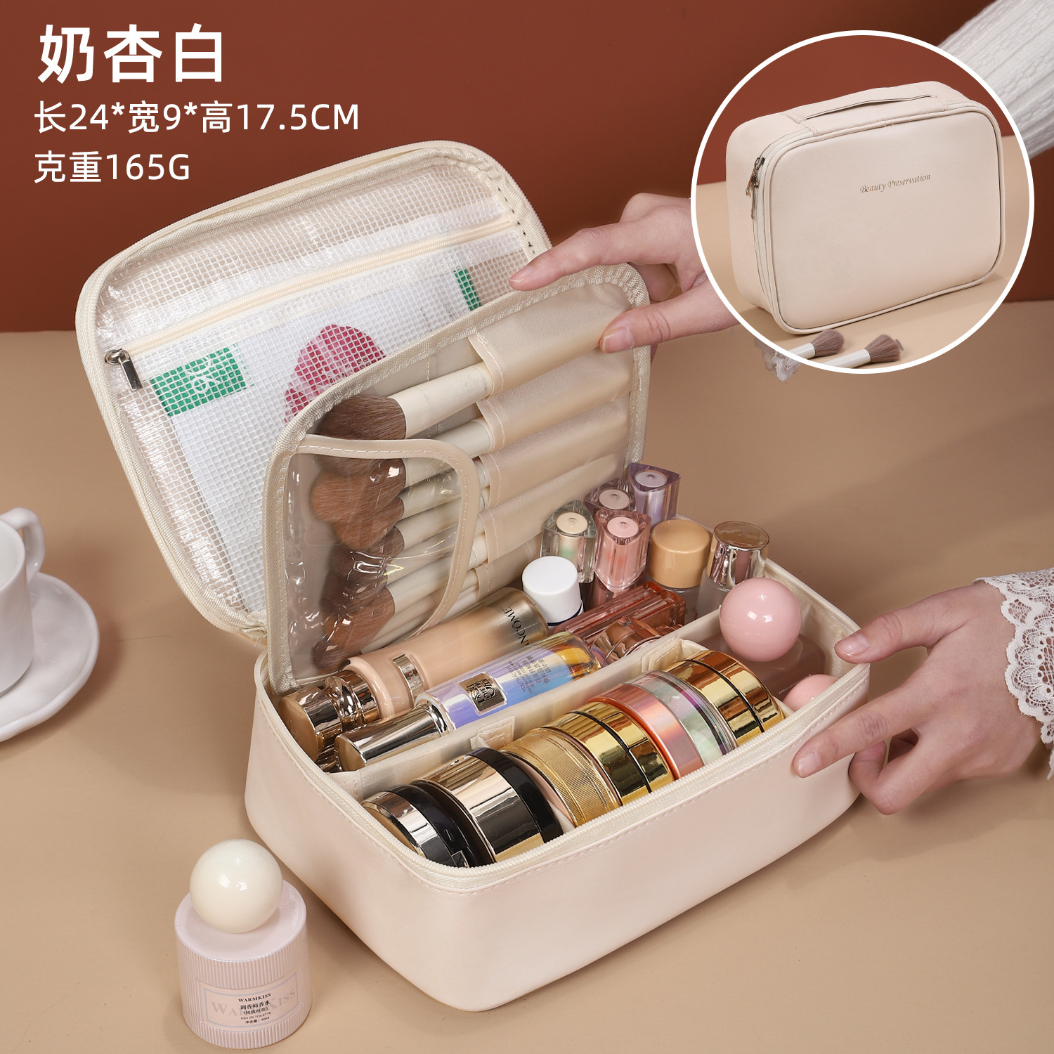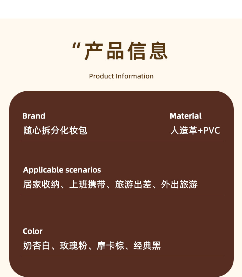 새로운 PU 휴대용 수납 가방, 분리형 여행용 대용량 고급 다기능 화장품 가방