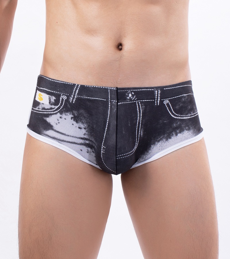 남자의 새로운 브리프 여름 패션 수영 트렌드 3D 데님 공예 인쇄 속옷 클래식 반바지스토어 가기