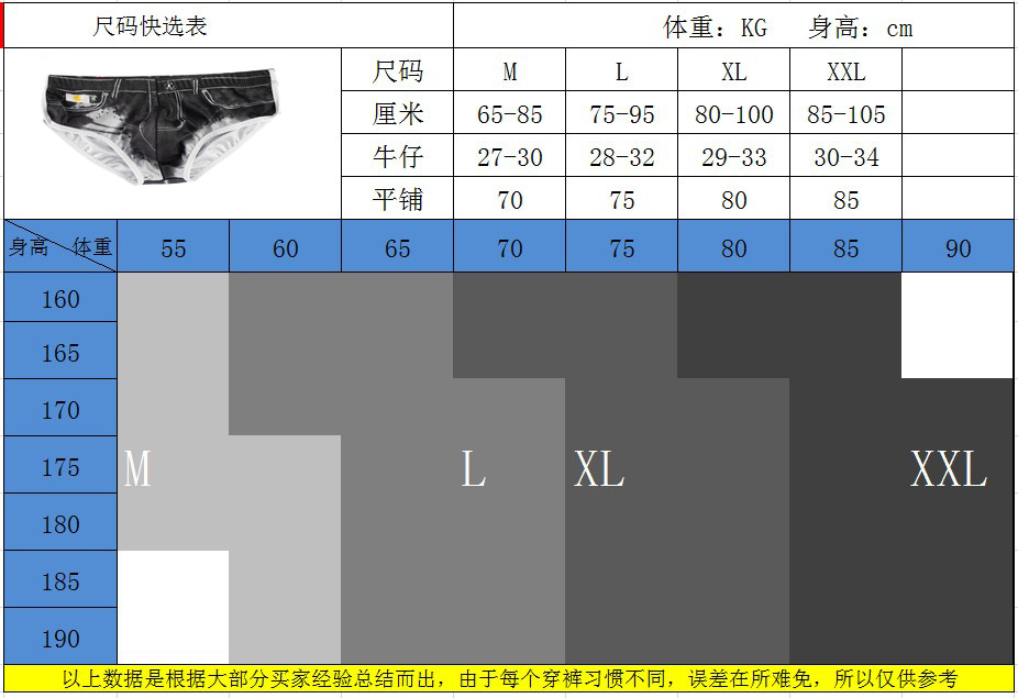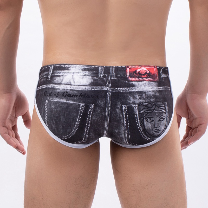 남자의 새로운 브리프 여름 패션 수영 트렌드 3D 데님 공예 인쇄 속옷 클래식 반바지
