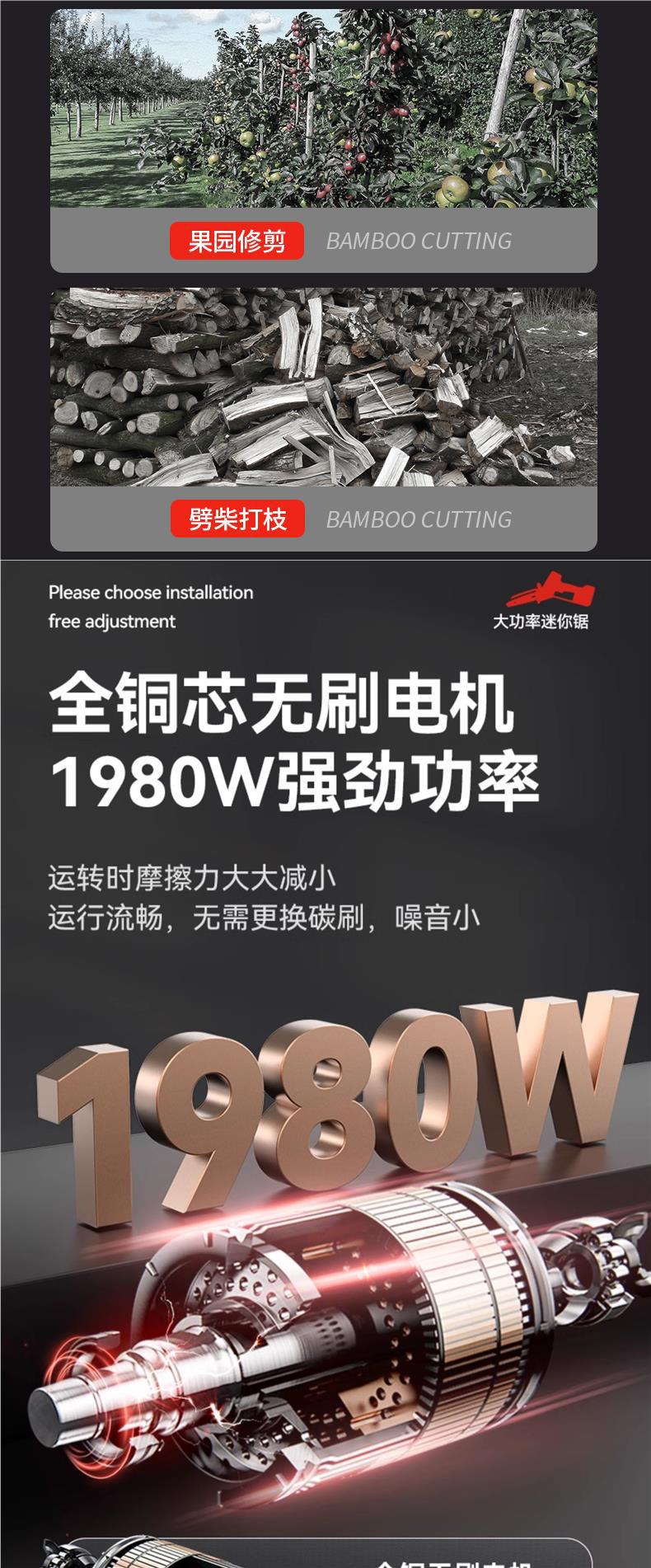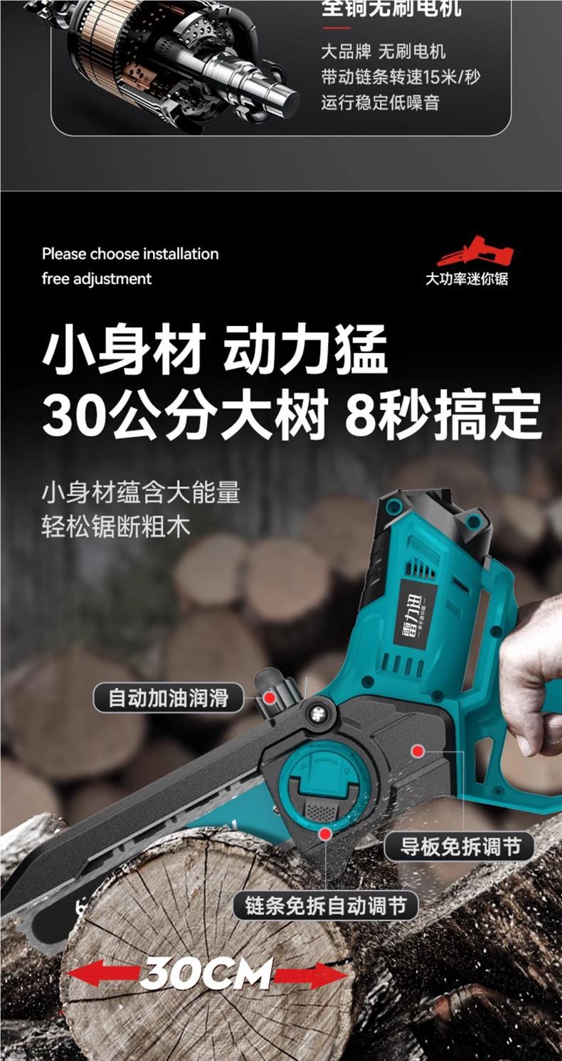 전기 톱 가구 작은 휴대용 나무 재충전 용 리튬 전기는 장작 야외 목재 절단 아티팩트에 따라 단일 팔찌를 보았다