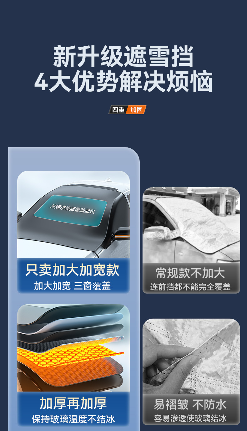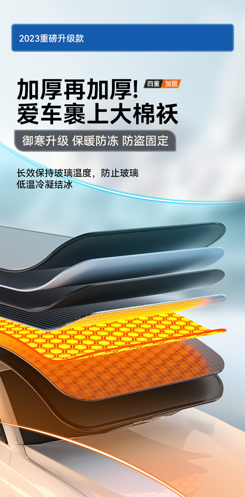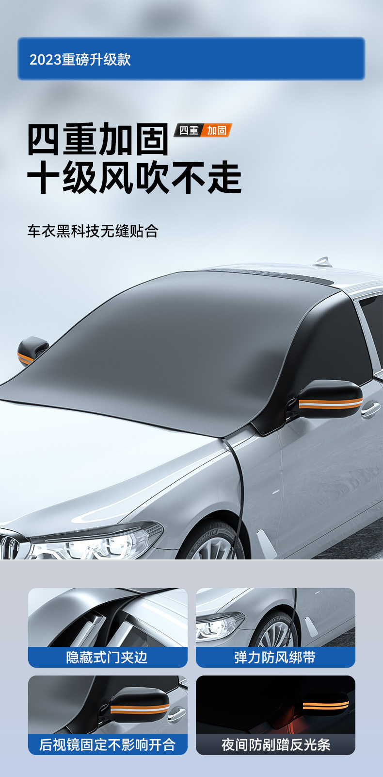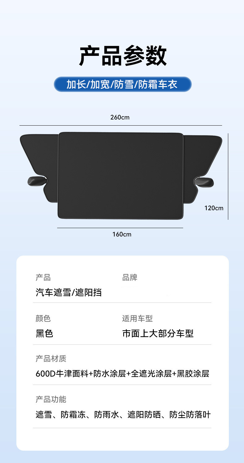 1、牛津布材质,不伤车漆,防晒、隔热、防雨雪、防风尘、防划痕、抗拉力强。