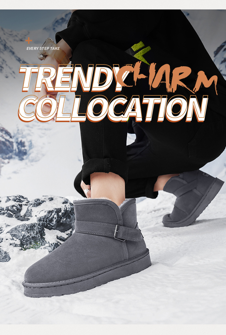 스노우 부츠 여성의 2024 새로운 가을과 겨울 기모 두꺼운 여성 신발 소 가죽 따뜻한 눈면 신발 올 매치 캐주얼 부츠