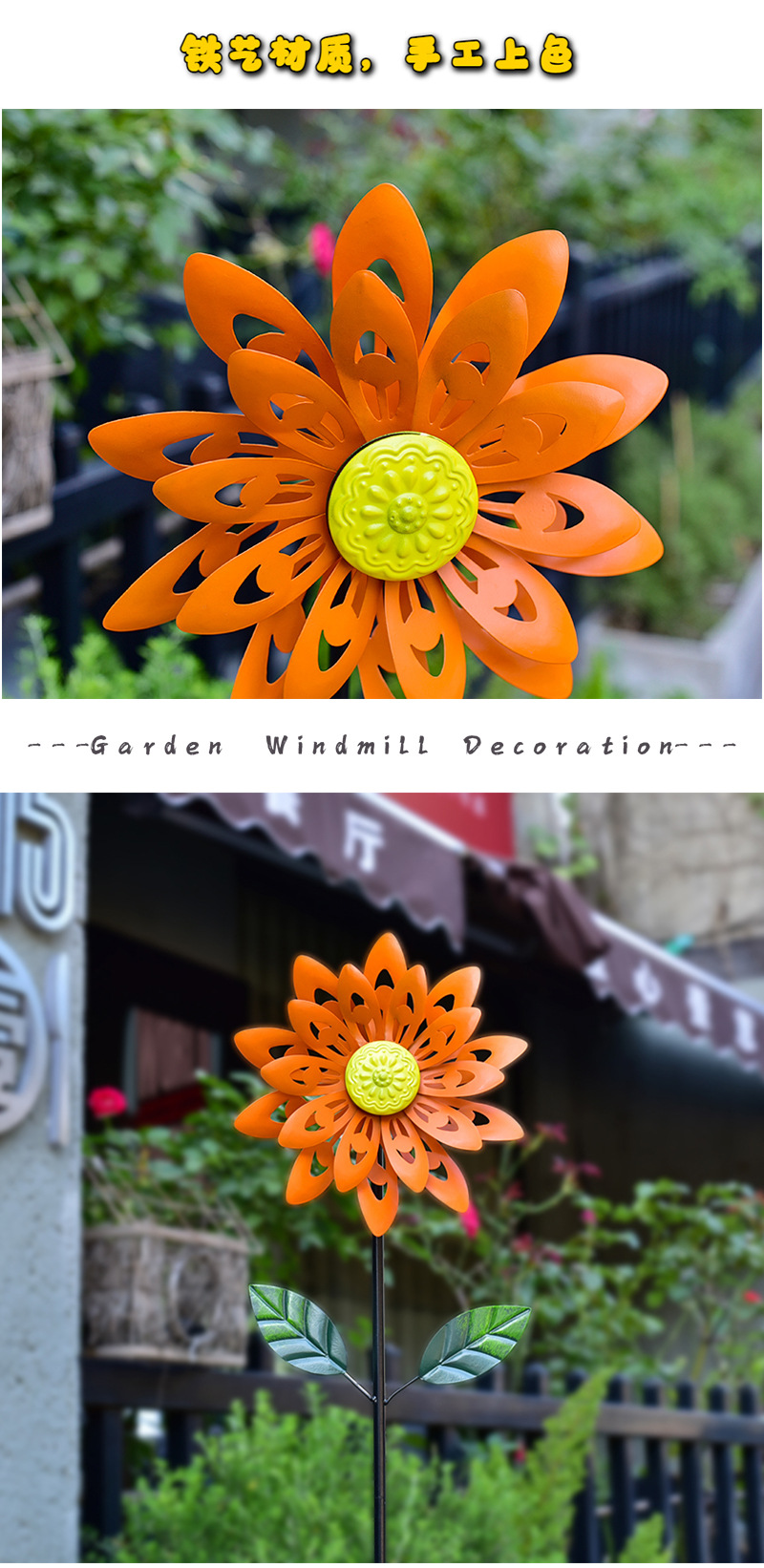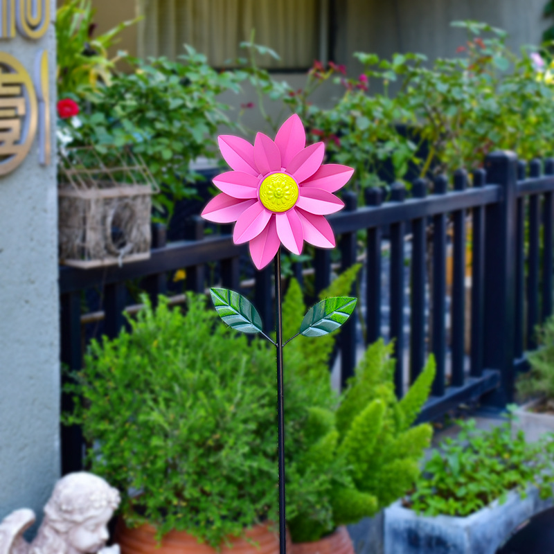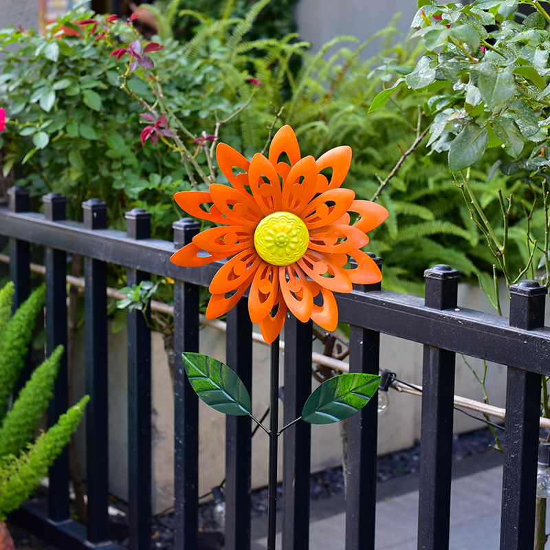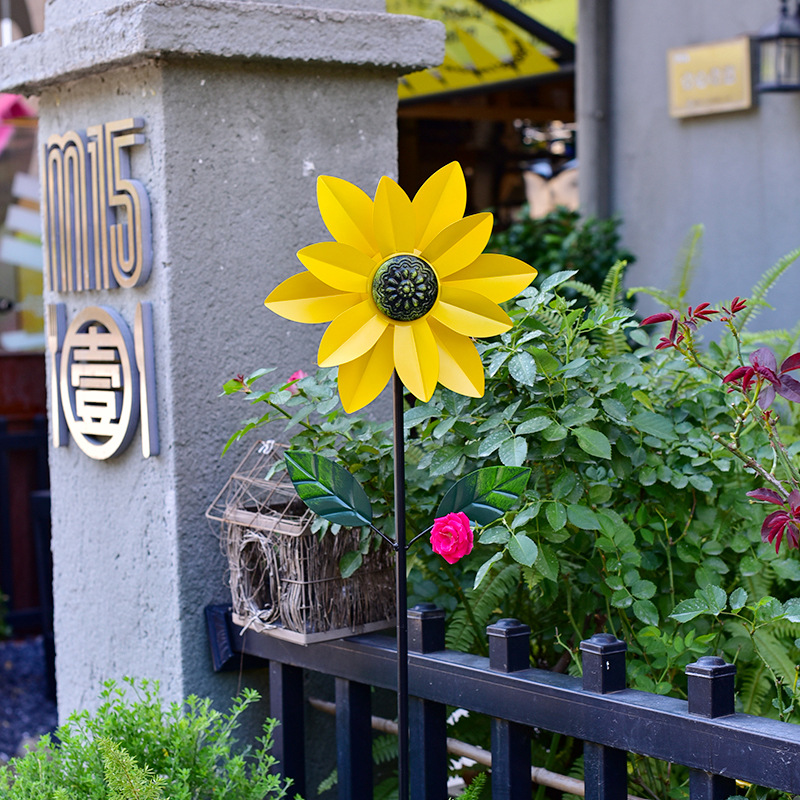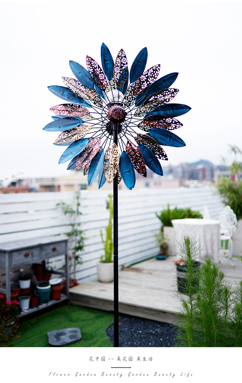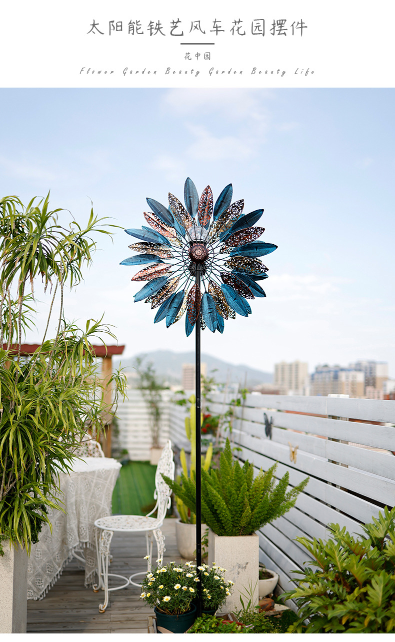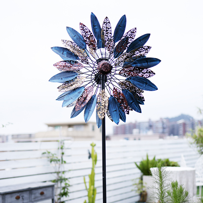 태양 철 풍차 목가적 인 스타일 야외 정원 안뜰 장식품 장식 선반 풍차 더블 레이어 회전 크리에이티브