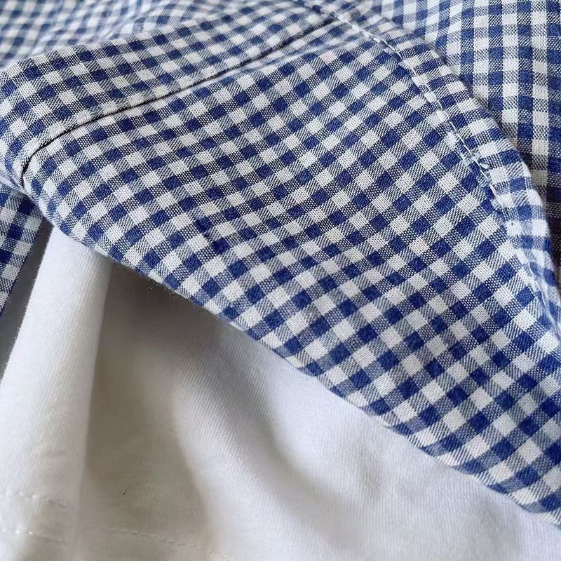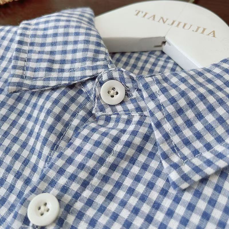 어린이 캐주얼 긴 소매 셔츠 캐주얼 귀여운 팬더 셔츠 블루 격자 무늬 소년 가을 원피스 어린이 원피스 소녀상