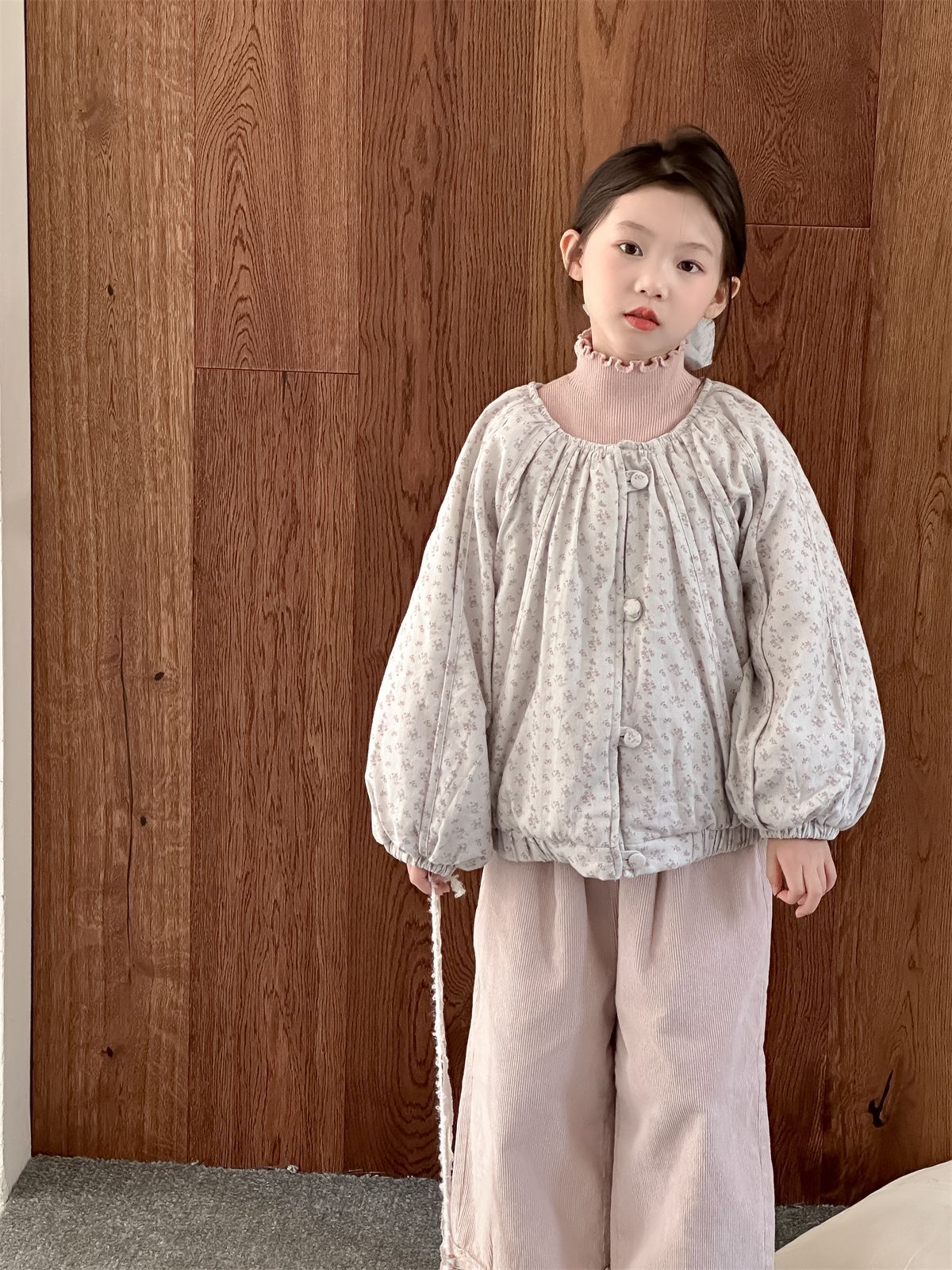 꽃과 검색 어린이 착용 소녀 자켓 겨울 2024 새로운 어린이 꽃 자켓 한국식 면 꽃 자켓 트렌디