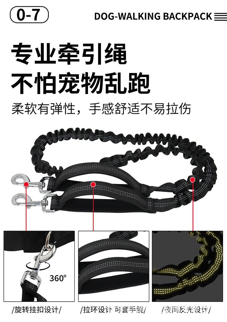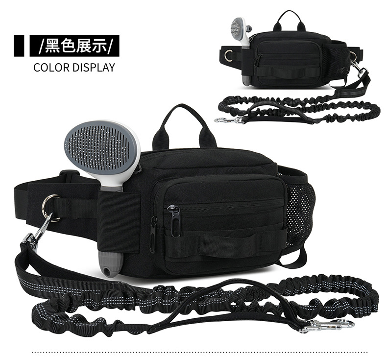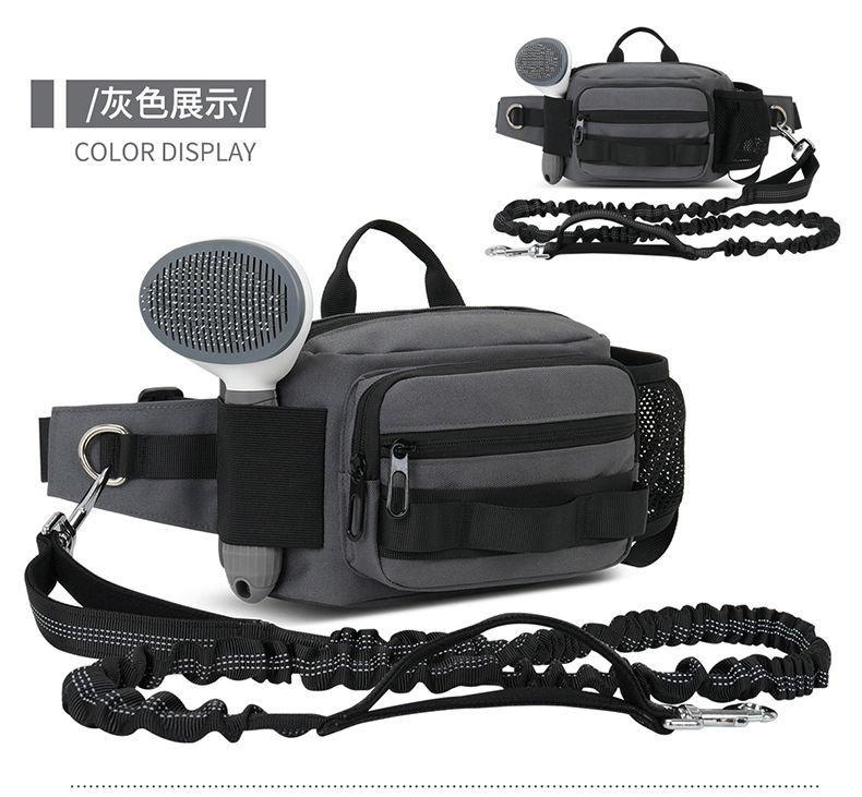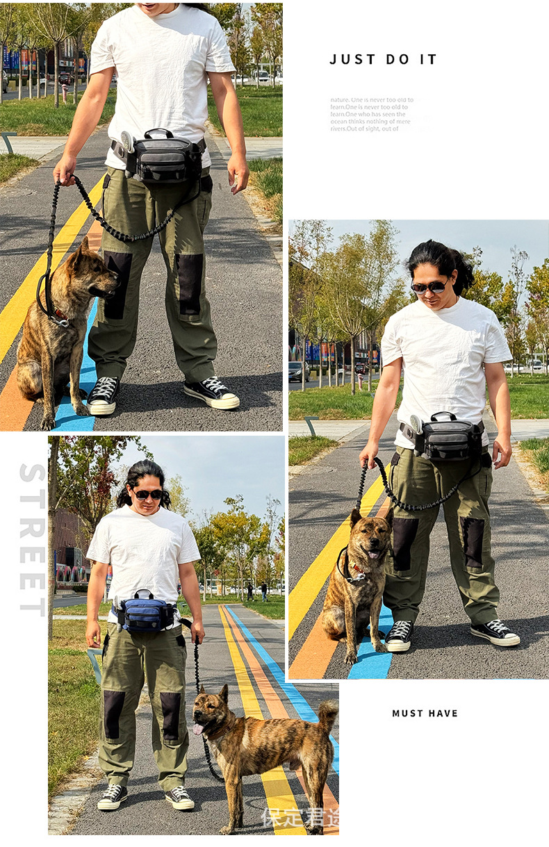 중대형견용 크로스보더 방폭견인끈, 애견산책가방, 다기능 물병허리가방, 아웃도어스포츠허리가방