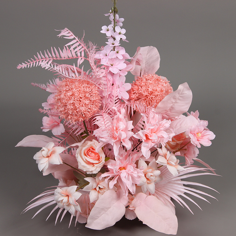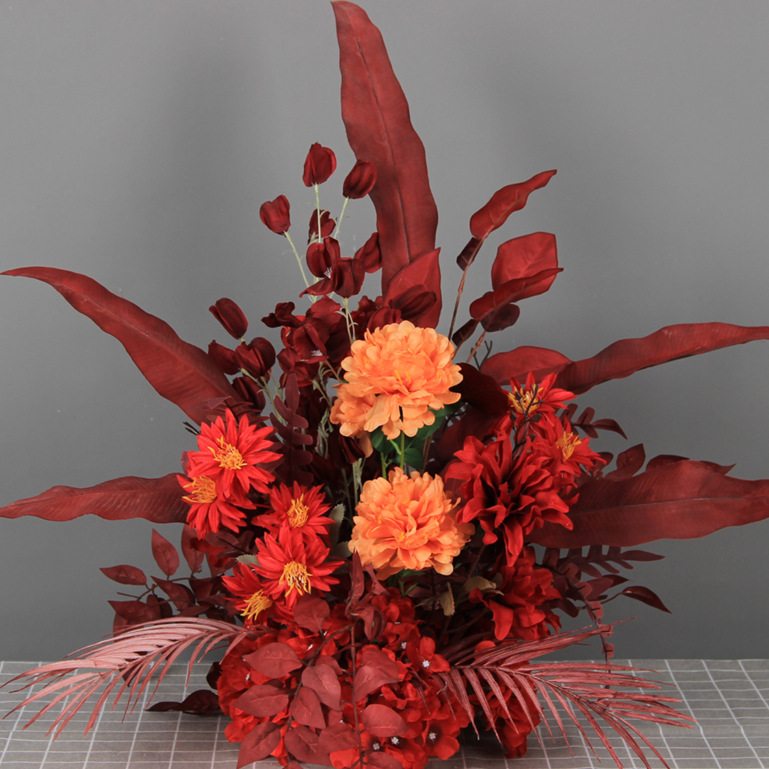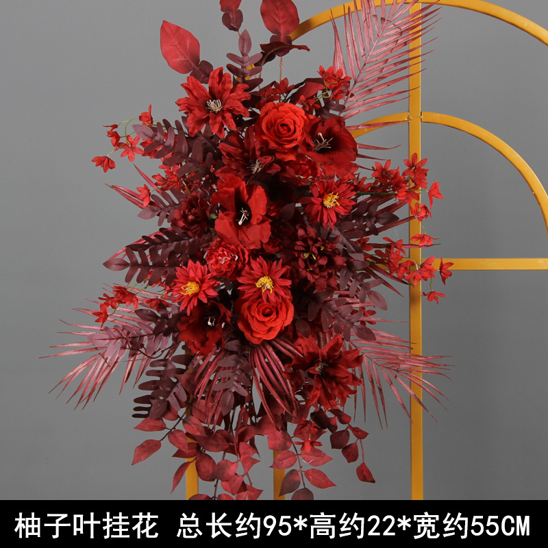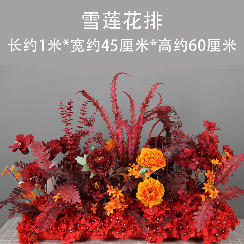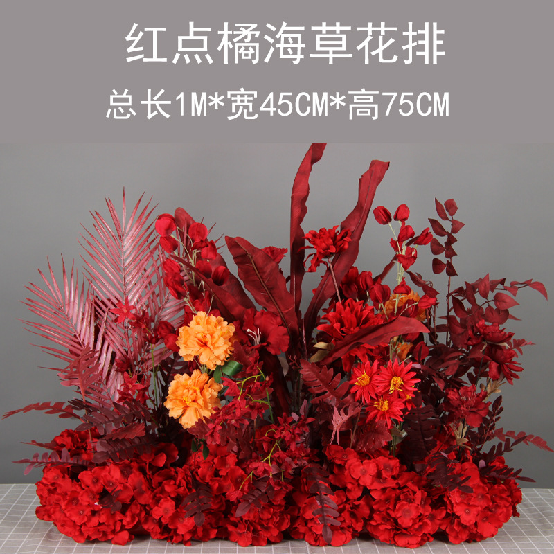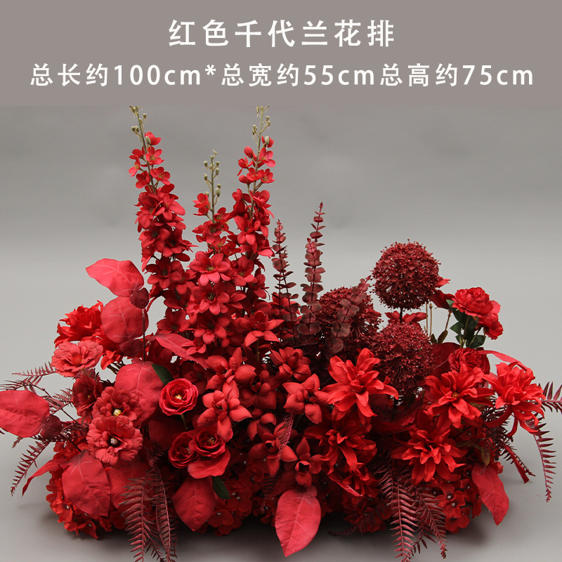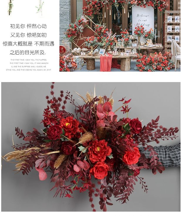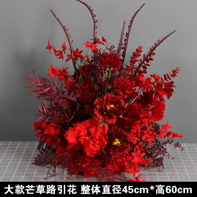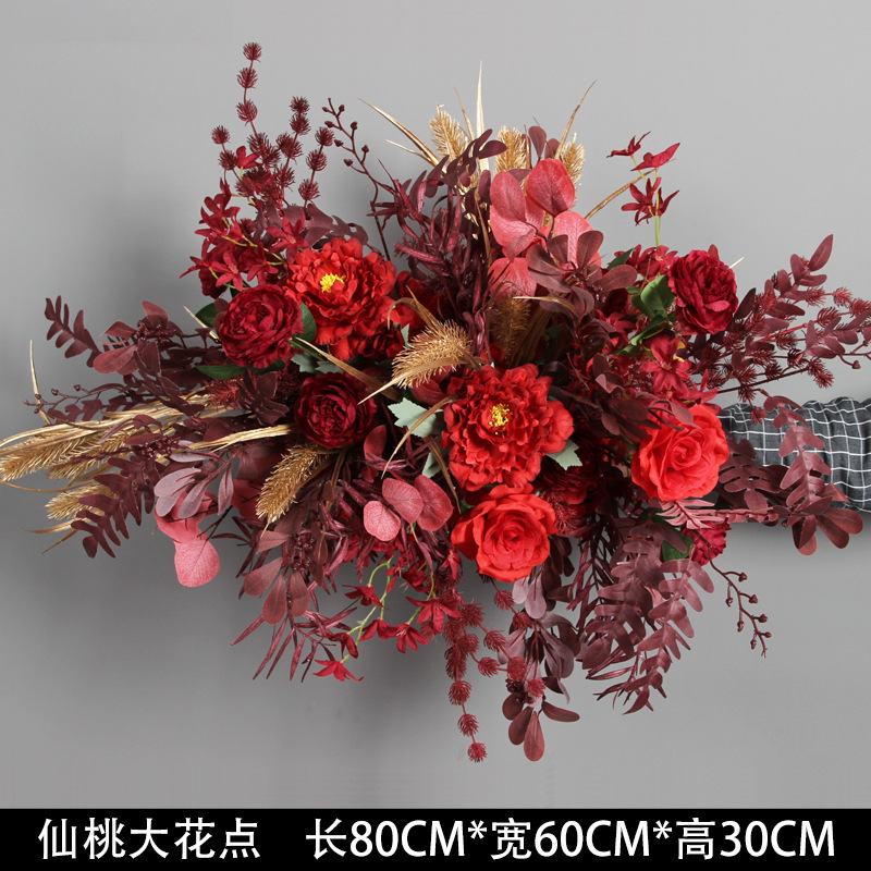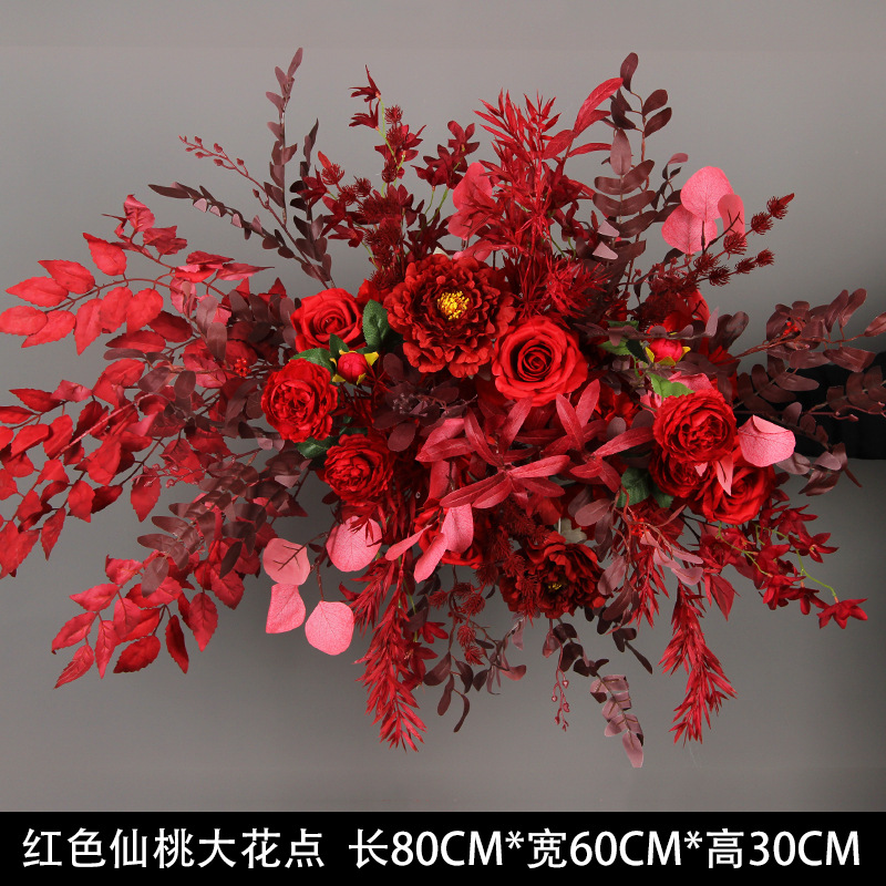 婚庆仿真花仙桃大花点挂花森系红色系拐角花路引花排婚礼背景挂花