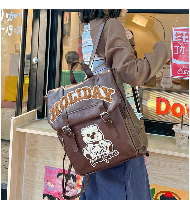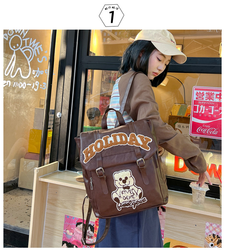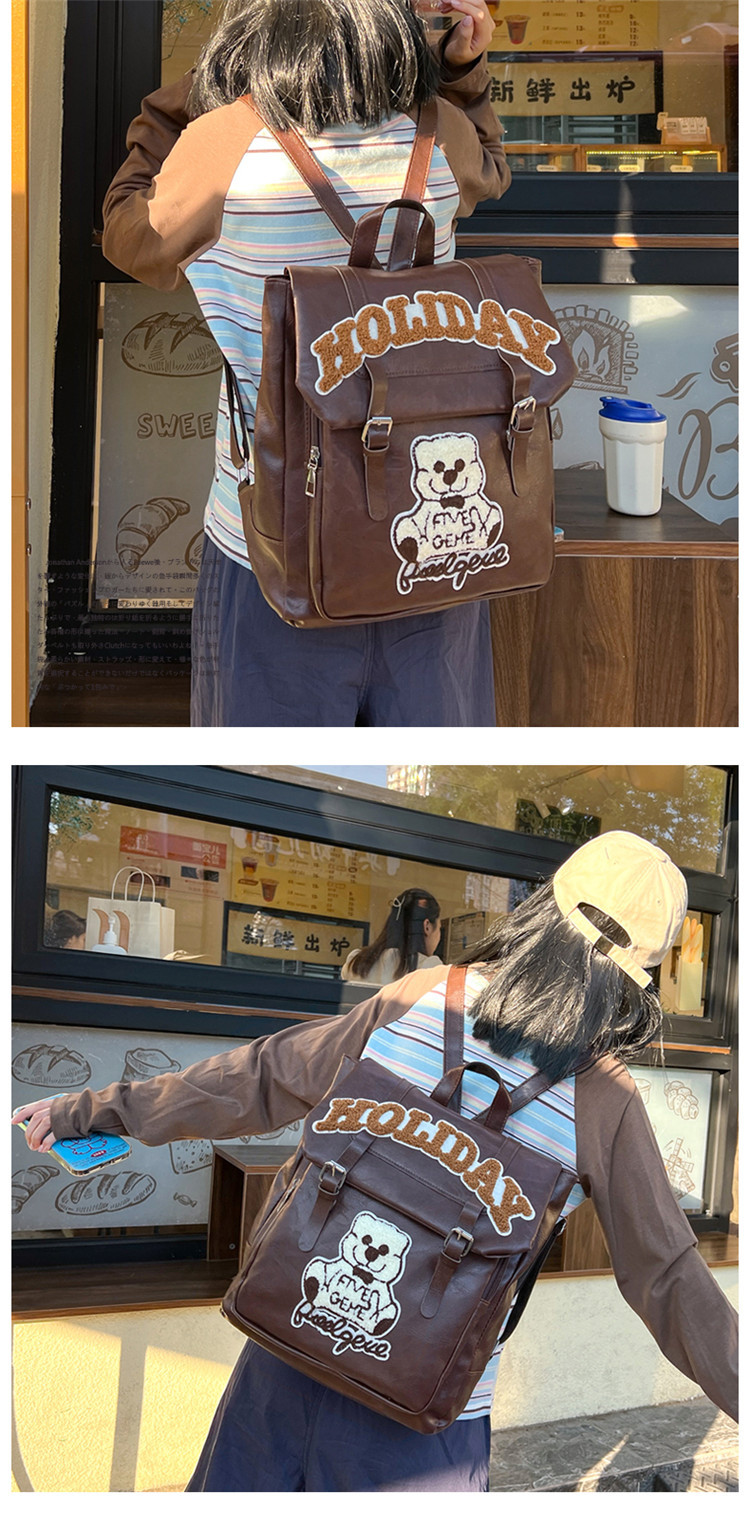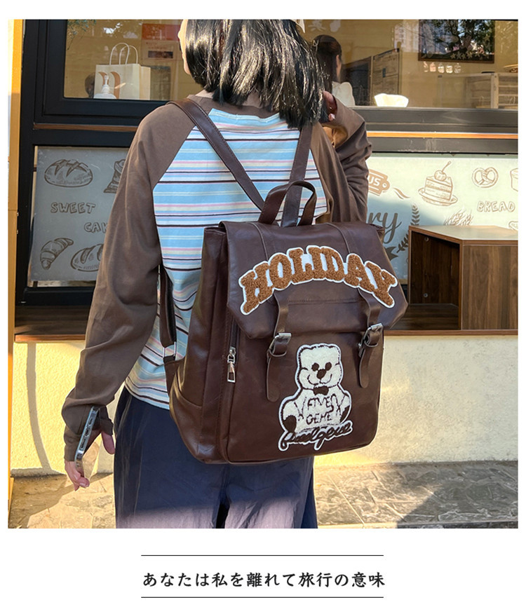 배낭 2024 새로운 편지 곰 핸드백 여행 대용량 미국 스타일 복고풍 스타일 배낭스토어 가기