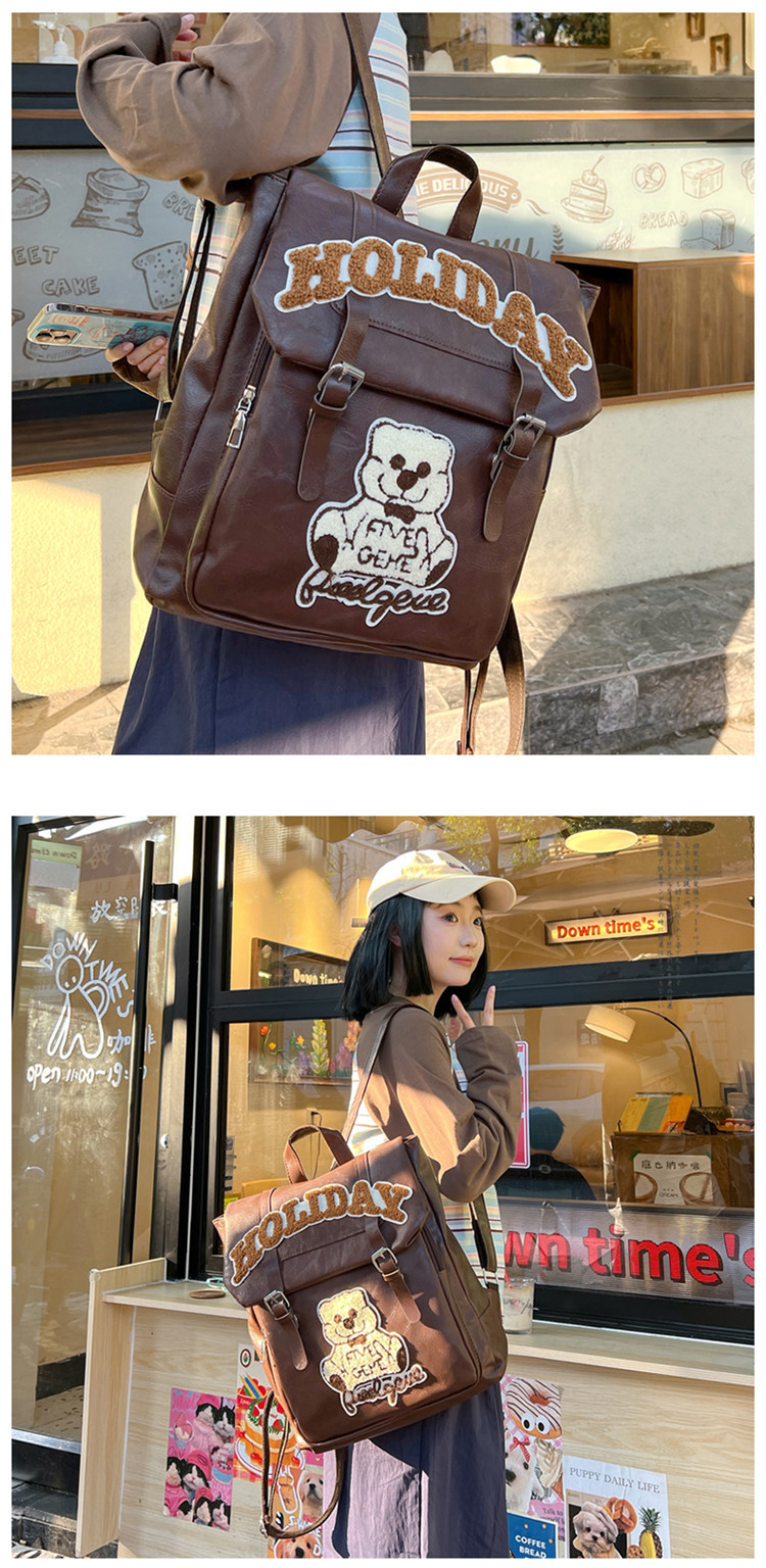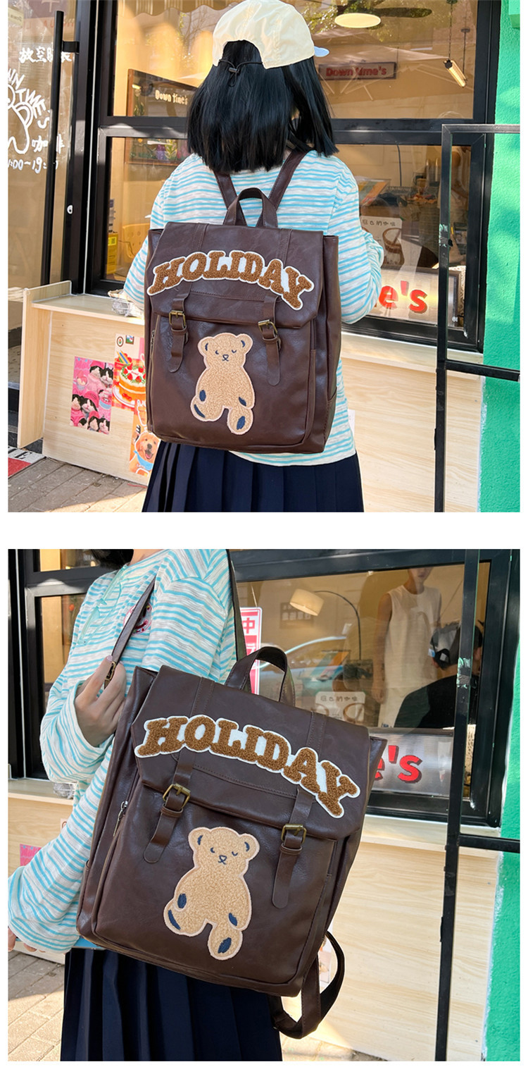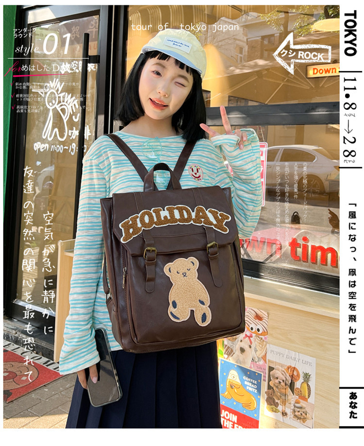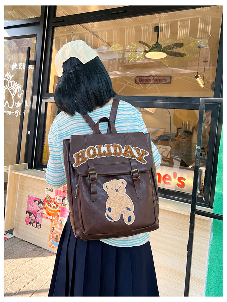 배낭 2024 새로운 편지 곰 핸드백 여행 대용량 미국 스타일 복고풍 스타일 배낭스토어 가기