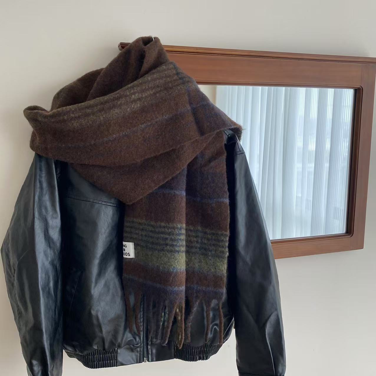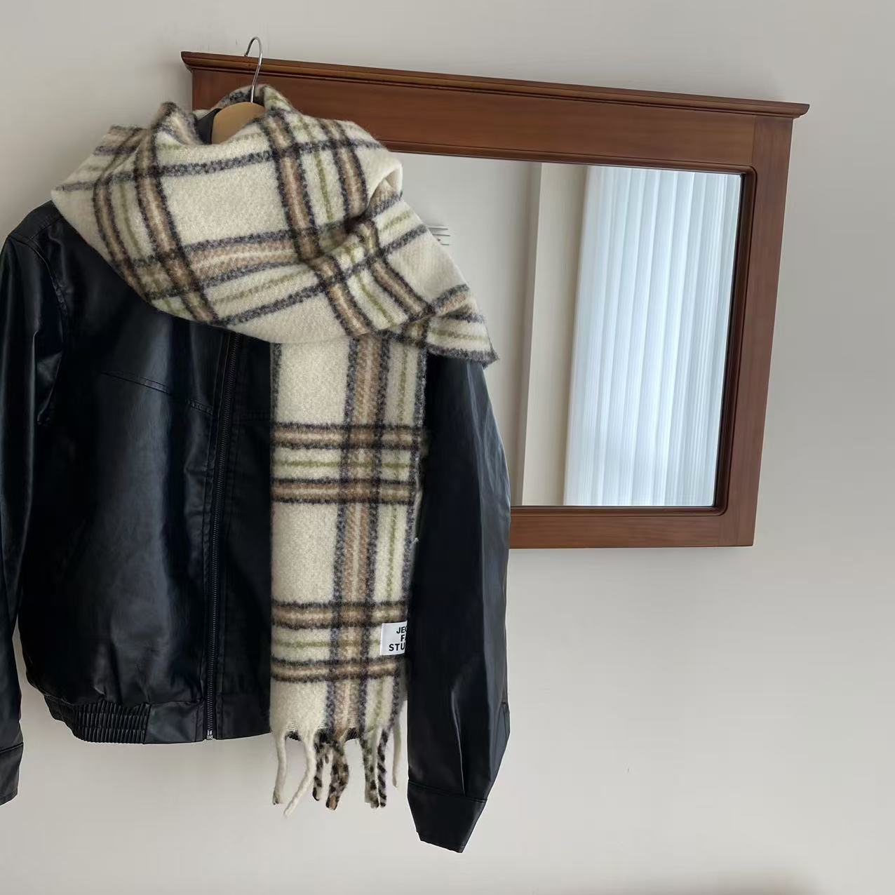 30 울 겨울 간단한 격자 무늬 모헤어 굵은 수염 스카프 여성 학생 커플 따뜻한 목 두꺼운 목도리