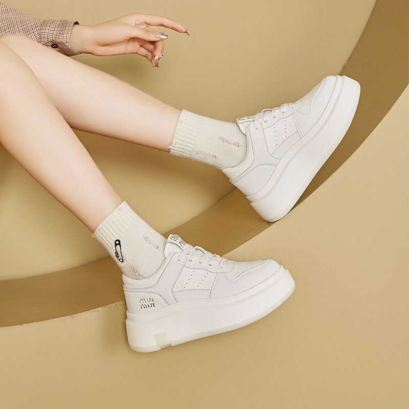 두꺼운 밑창 작은 흰색 신발 여성 신발 2024 새로운 가을과 겨울 올 매치 인 캐주얼 신발 레이스 업 경량 학교 보드 신발 증가스토어 가기