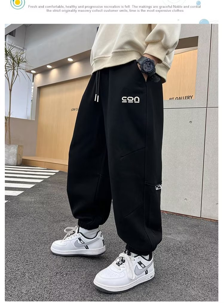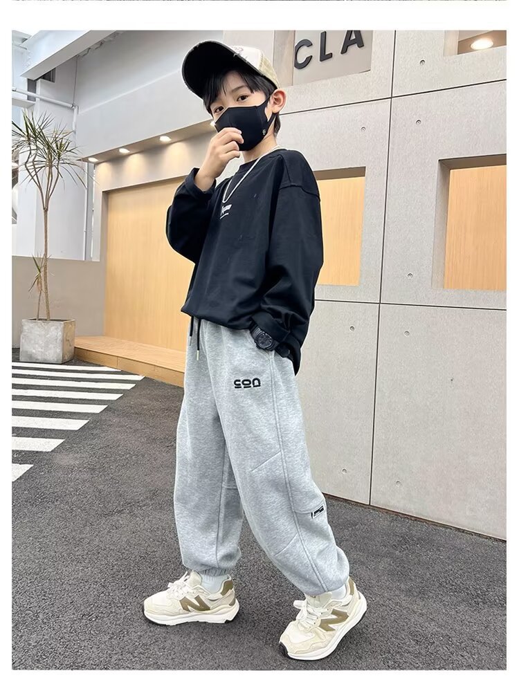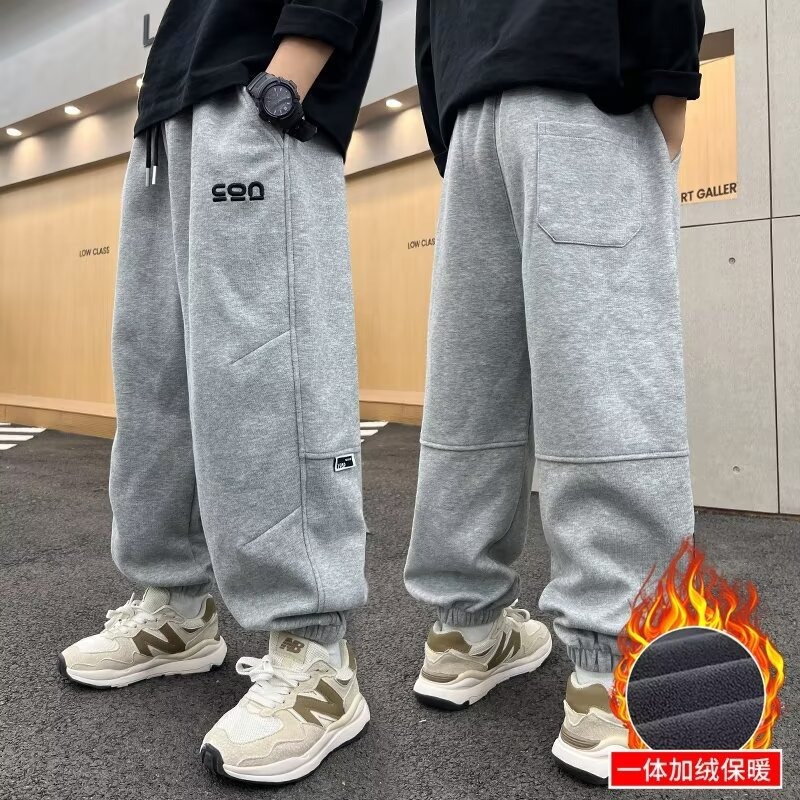 소년 바지 가을 겨울 2024 새로운 어린이 스포츠 바지 봄과 가을 중 큰 어린이 기모 바지 소년 가을 착용