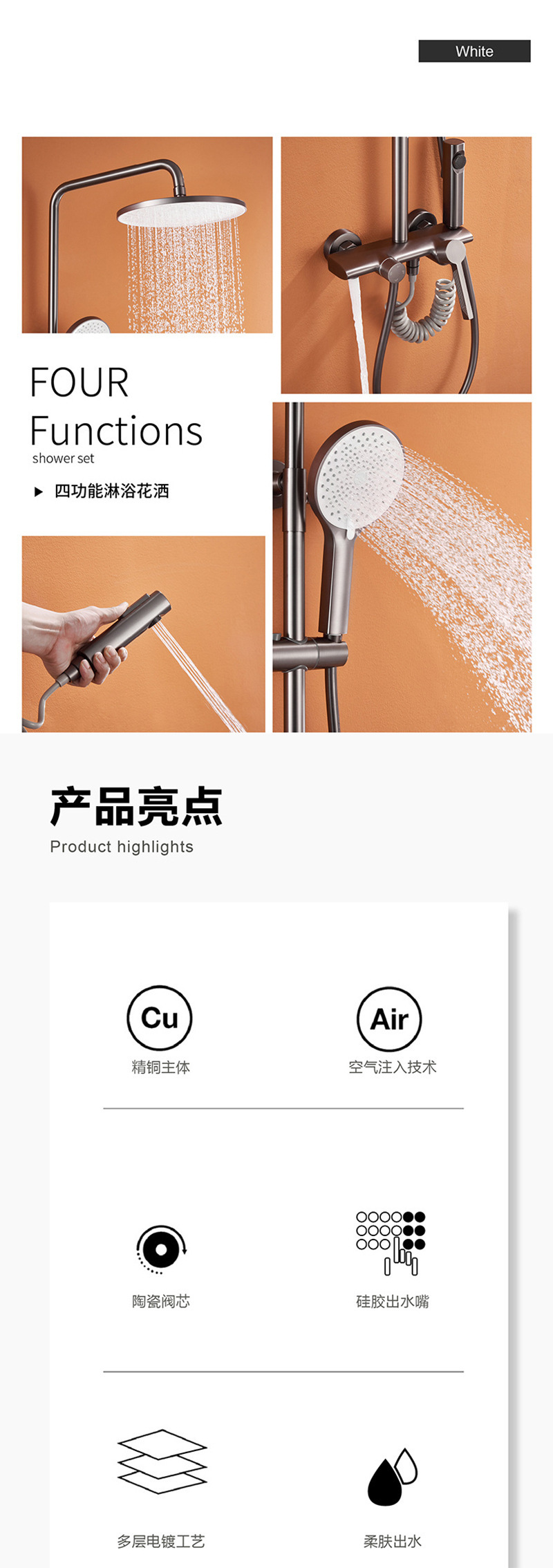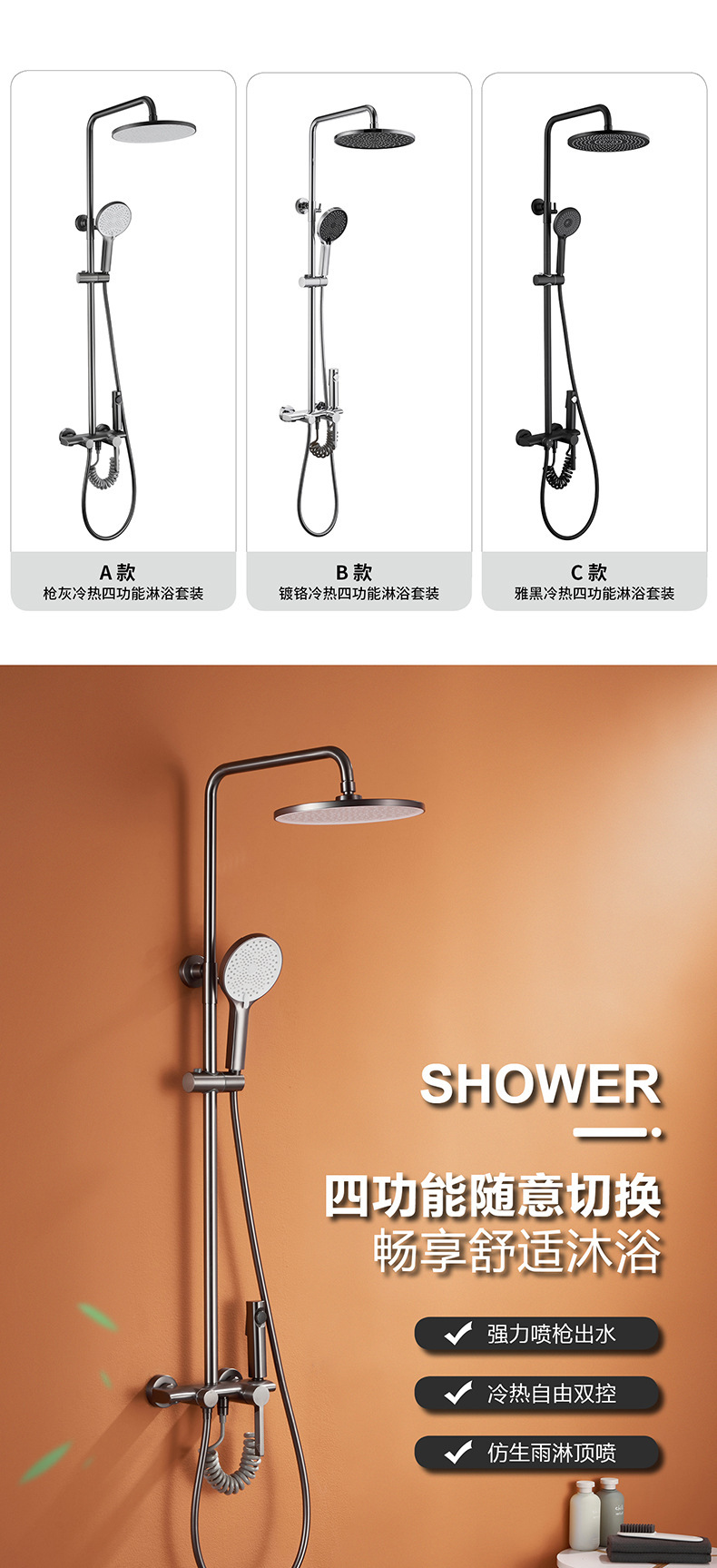 총 회색 샤워 샤워 샤워 세트 욕실 모든 구리 샤워 욕조 일정한 온도 샤워 헤드 욕실 가정