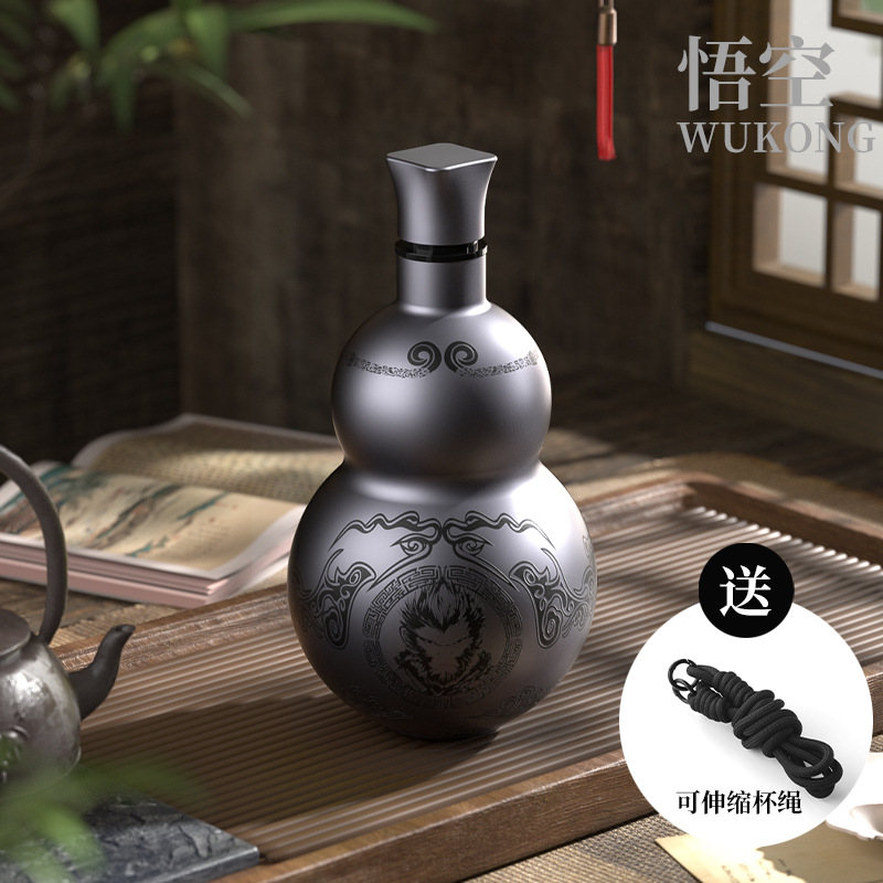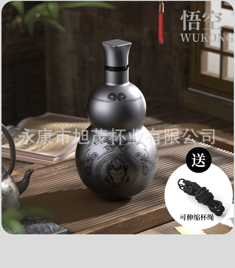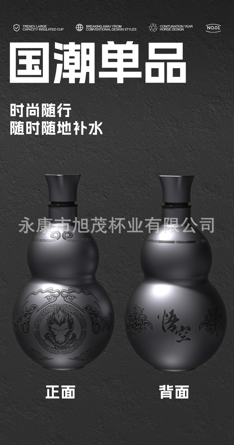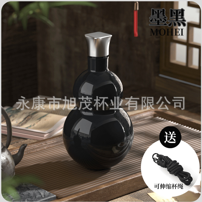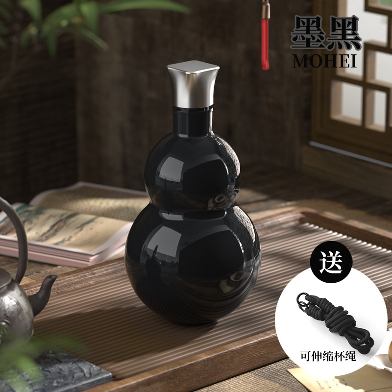 조롱박 머그잔 더블 레이어 머그잔 진공 스테인레스 스틸 휴대용 머그잔과 새로운 블랙 우콩