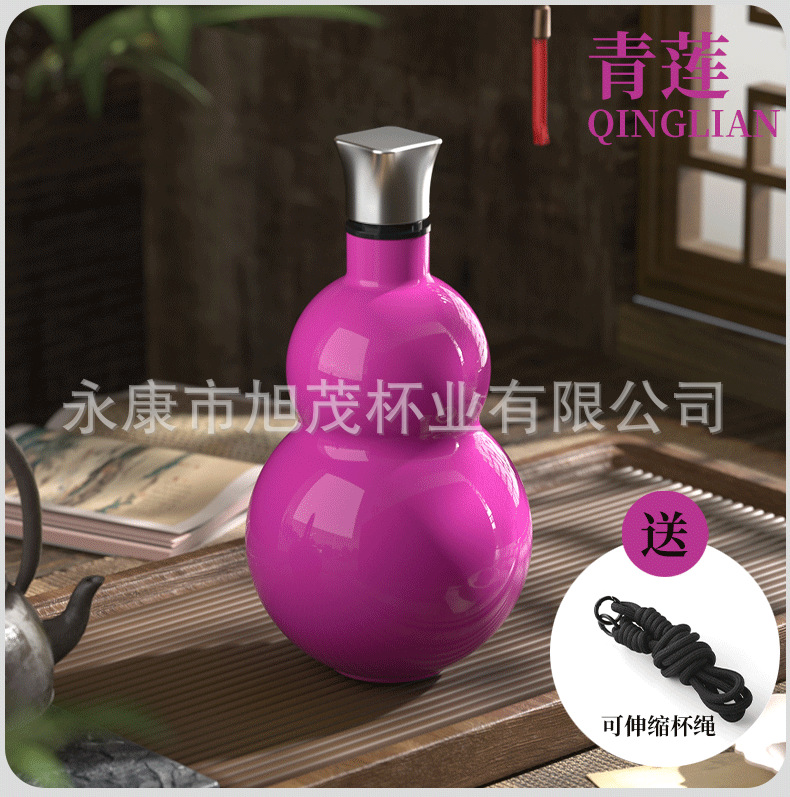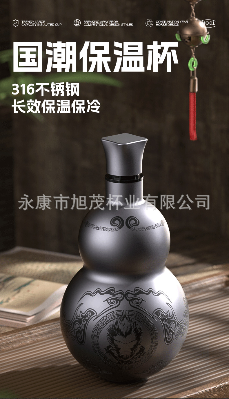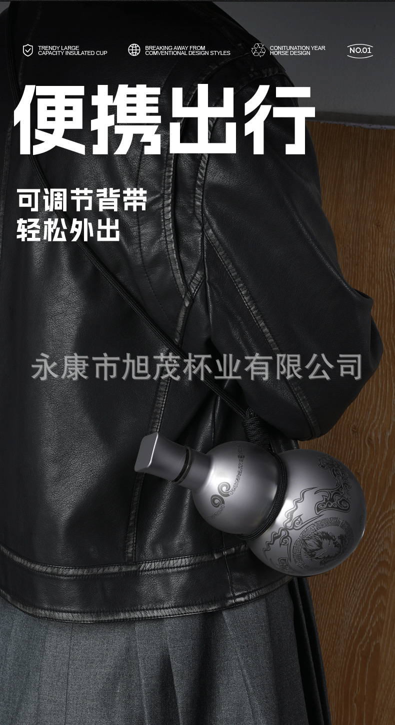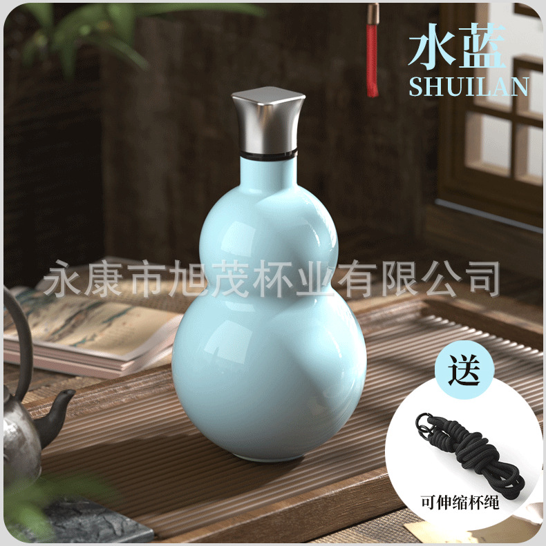 조롱박 머그잔 더블 레이어 머그잔 진공 스테인레스 스틸 휴대용 머그잔과 새로운 블랙 우콩