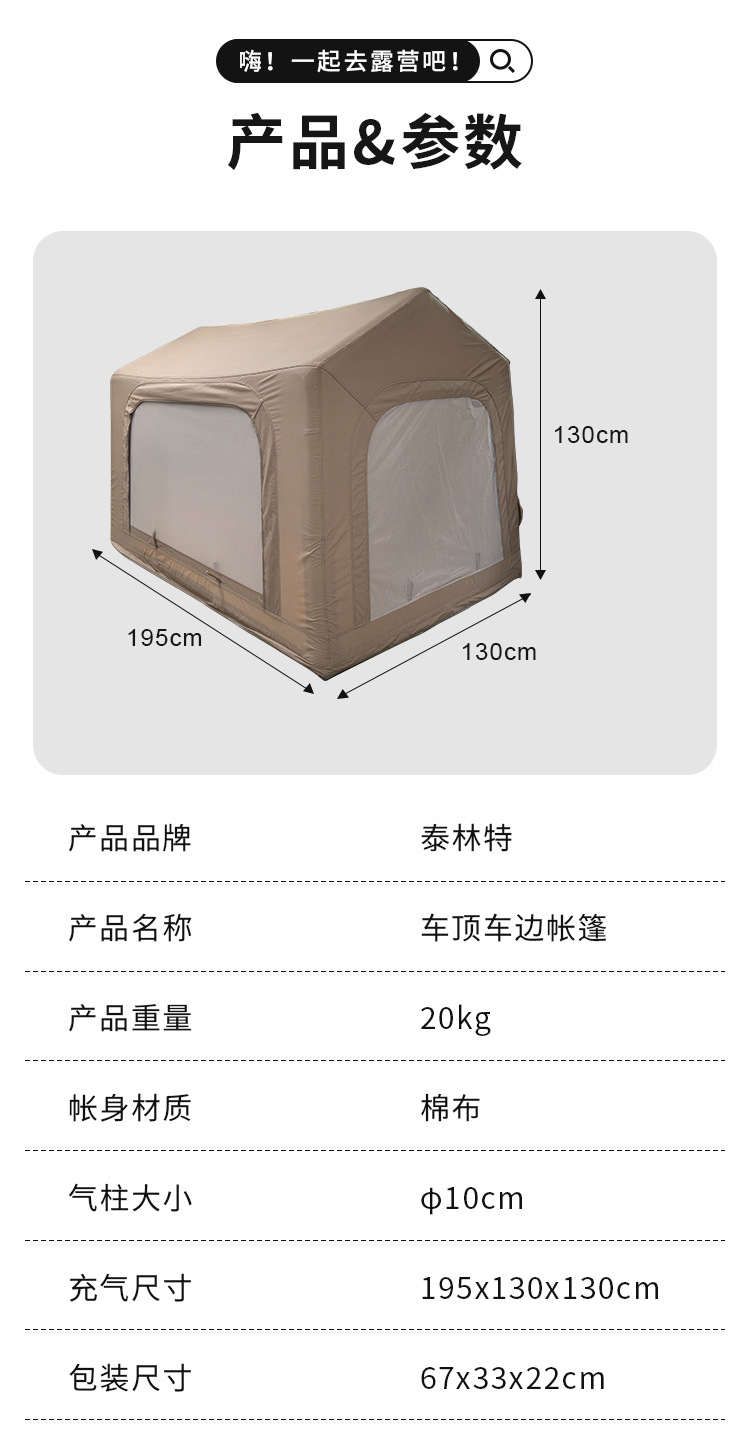 팽창식 루프탑 텐트, 야외 캠핑카 사이드 캐노피, 접이식 파라솔, 방수 및 자외선 차단, 셀레나이징, 샤워 텐트, 맞춤형스토어 가기