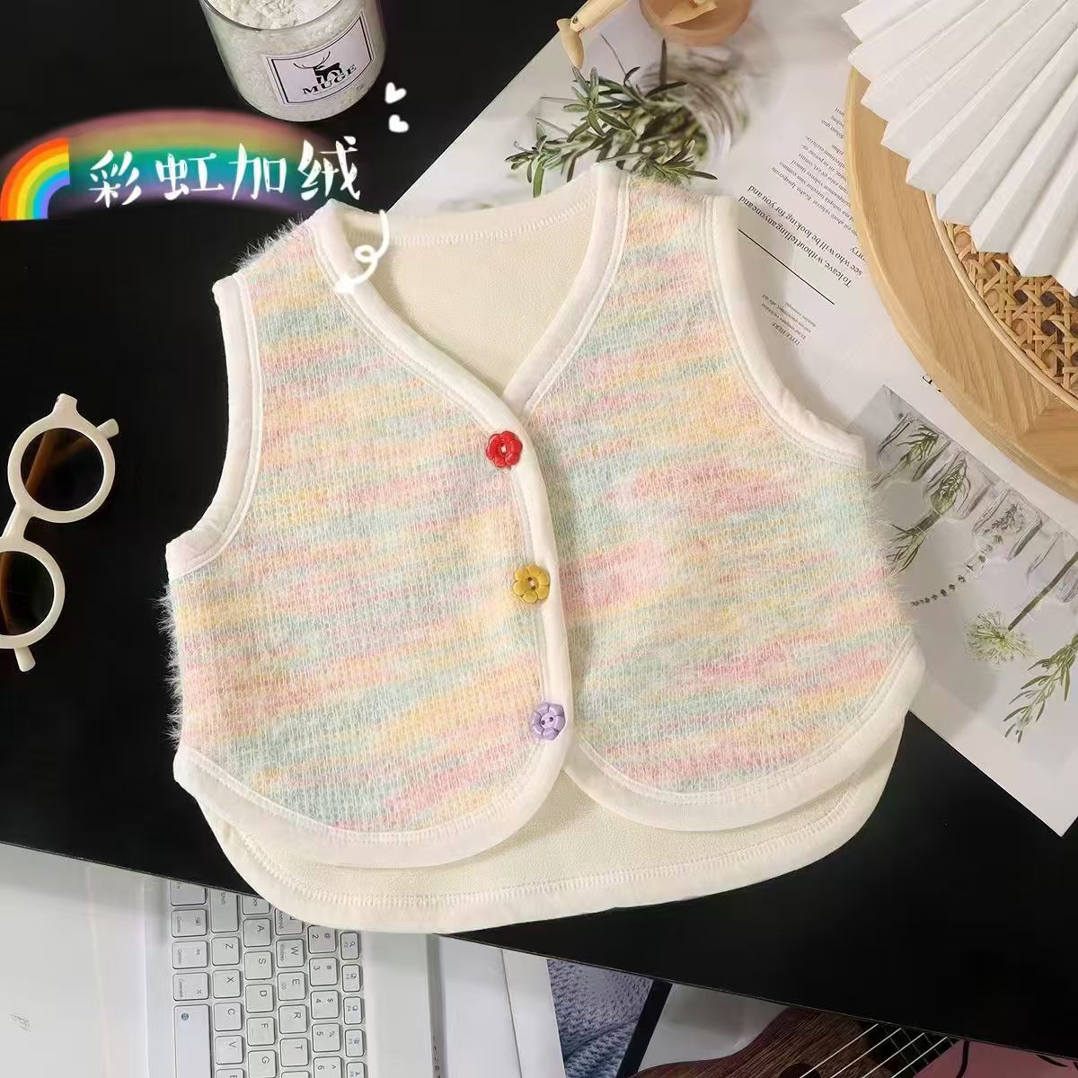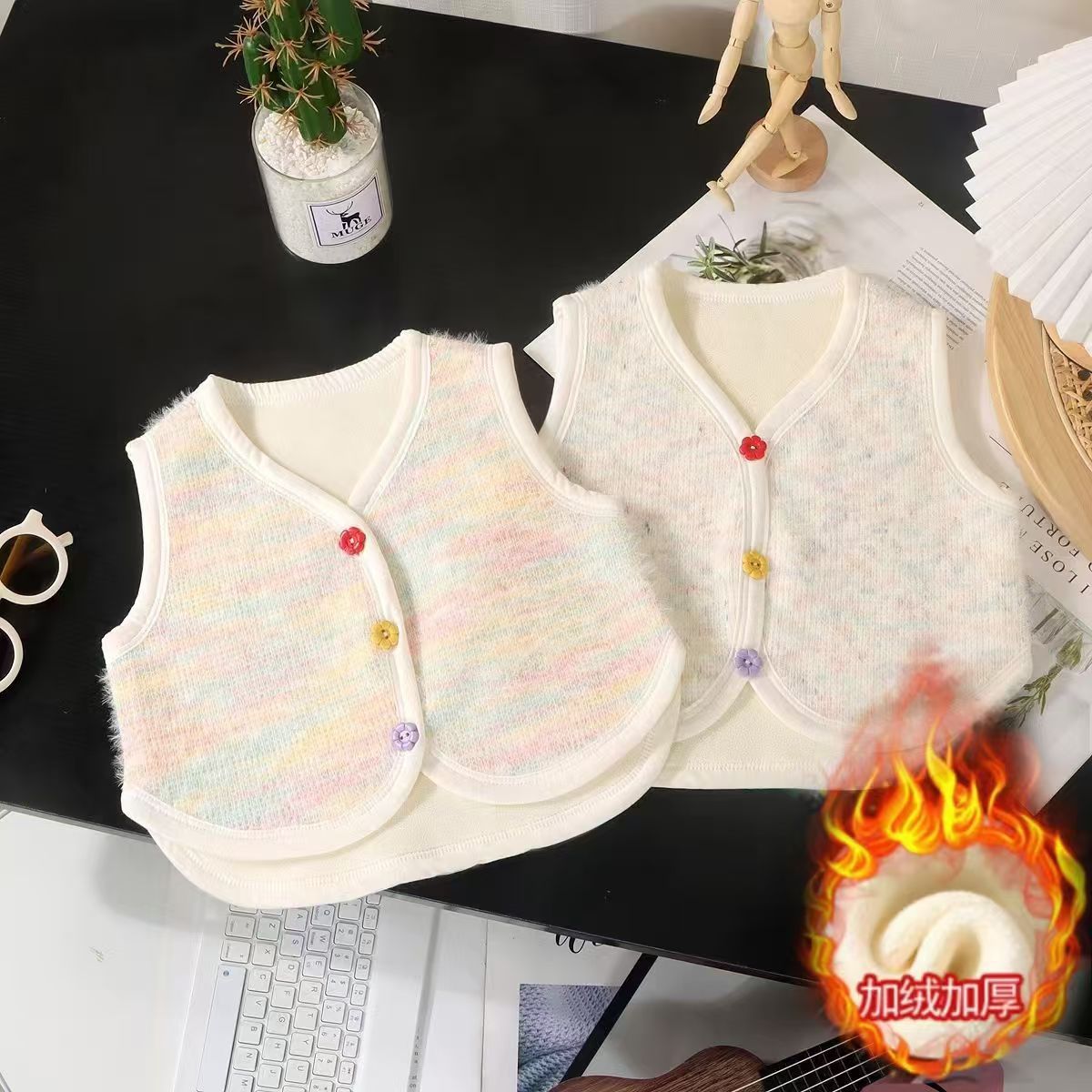2024 년 새 봄 가을 기모 한국식 조끼 남학생과 여학생을위한 따뜻한 아기 조끼 착용