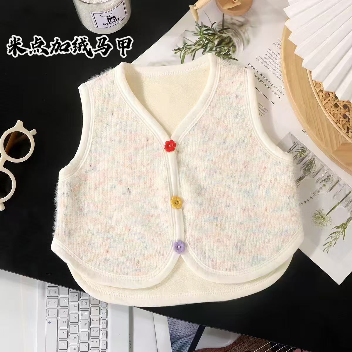 2024 년 새 봄 가을 기모 한국식 조끼 남학생과 여학생을위한 따뜻한 아기 조끼 착용스토어 가기