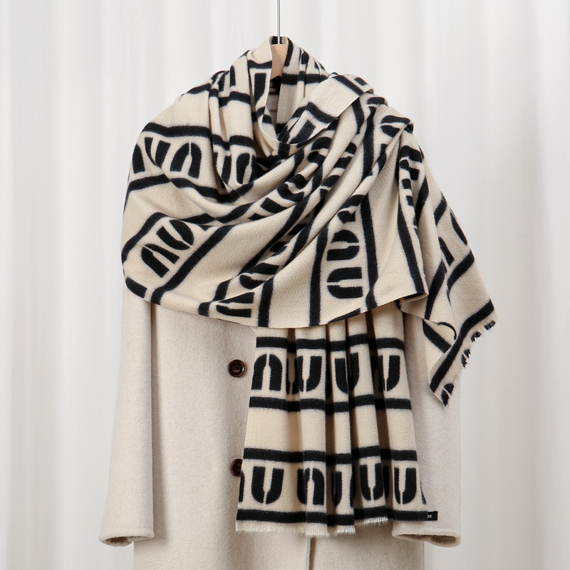 대외 무역 국경 간 라이브 방송 새로운 가을과 겨울 피부 친화적 인 따뜻한 캐시미어 인쇄 스카프 U 자형 편지 간단한 올 매치 목도리