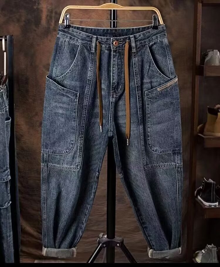 국경 간 미국 복고풍 두꺼운 청바지 남자 스트레이트 데닝 붉은 귀 Ameli 긴 바지 남자 겨울스토어 가기