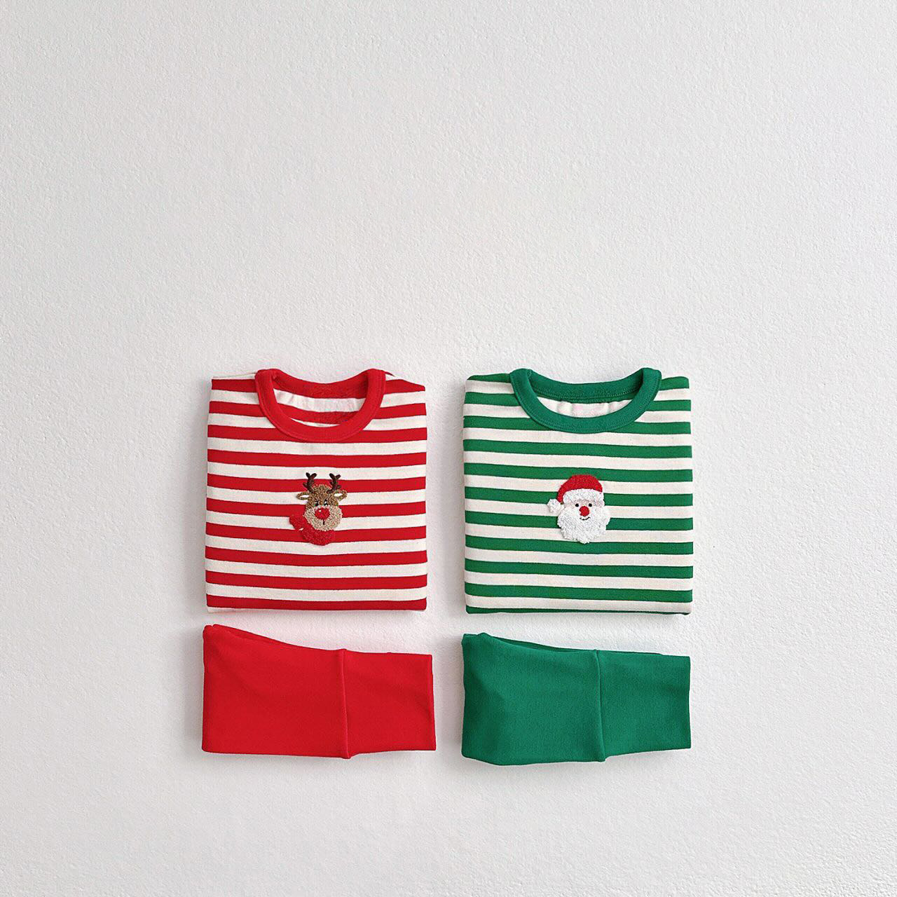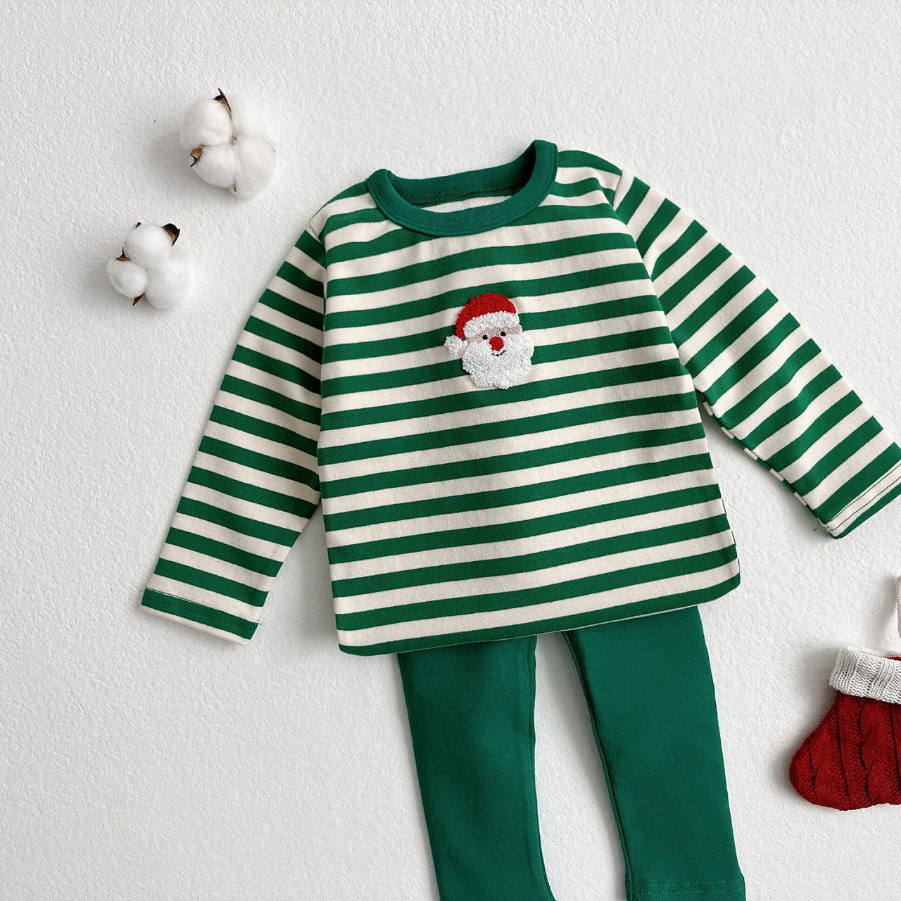 25 가을 한국판 아동 긴팔 세트 인스 스타일 크리스마스 의상 투피스 세트 유아 스트라이프 긴팔 이너웨어