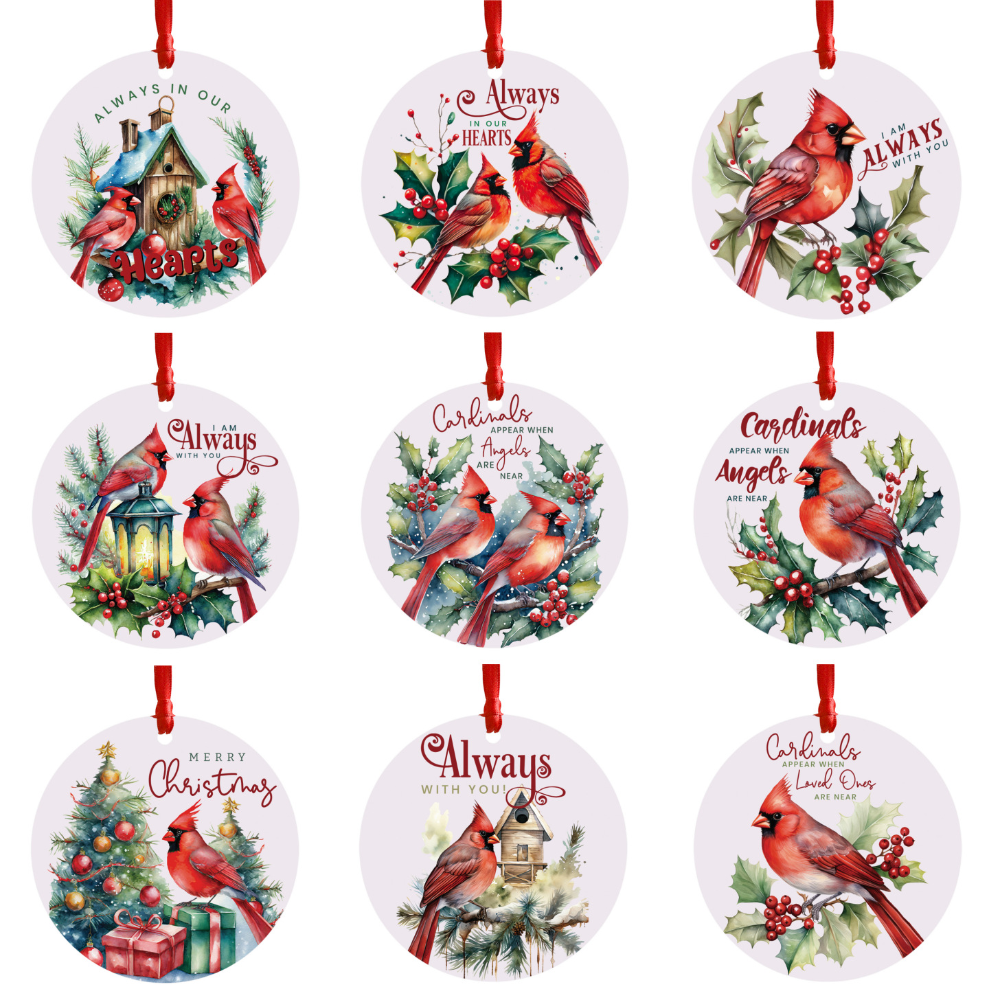 국경 간 크리스마스 펜던트 붉은 새 라운드 아크릴 장식 펜던트 크리스마스 트리 장식 태그 선물스토어 가기