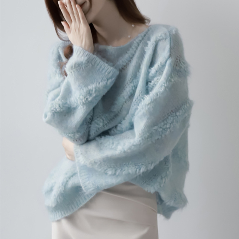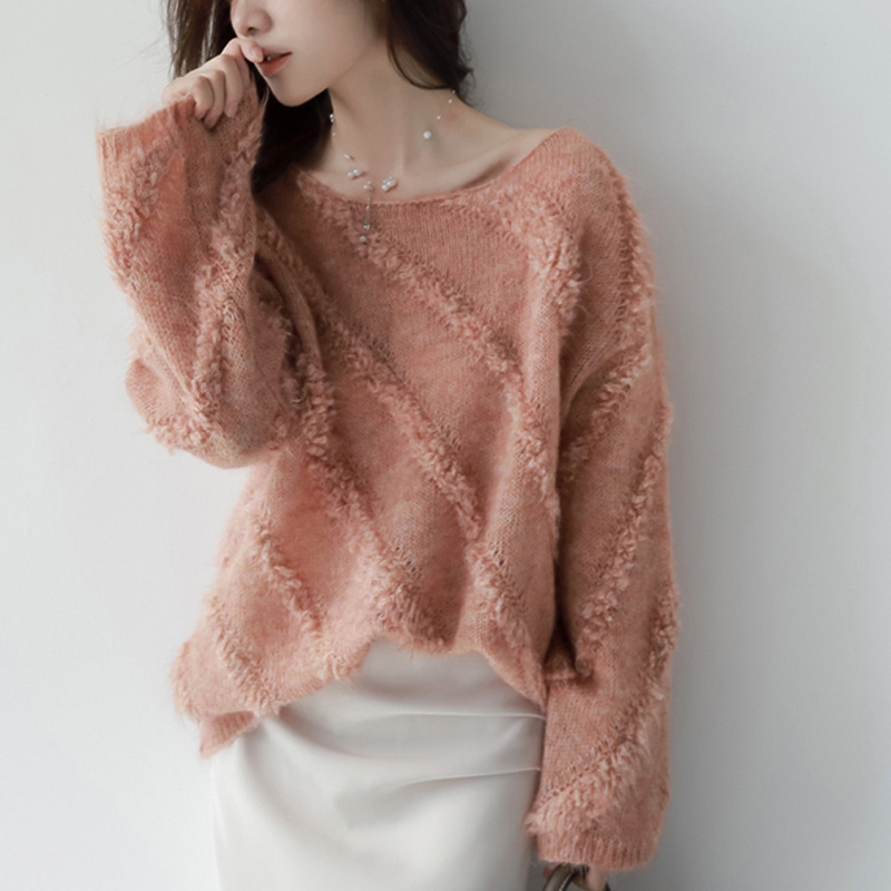 마발 소프트 왁스 오프 숄더 칼라 스웨터 2024 가을 여성용 새로운 니트 탑스토어 가기