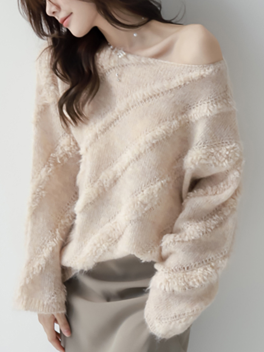 마발 소프트 왁스 오프 숄더 칼라 스웨터 2024 가을 여성용 새로운 니트 탑